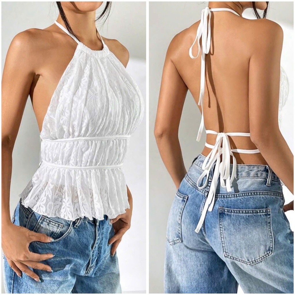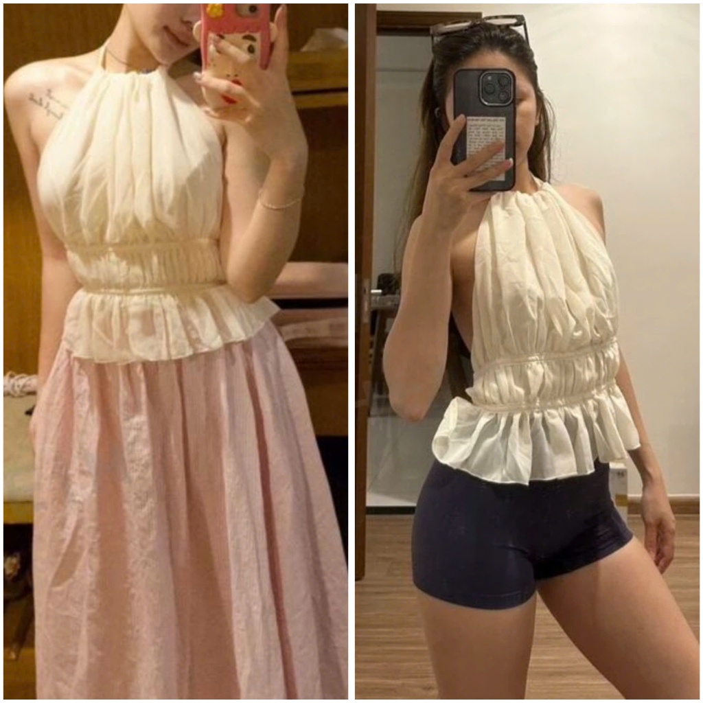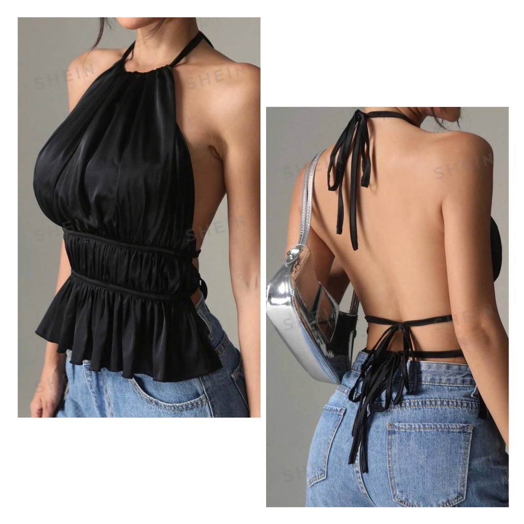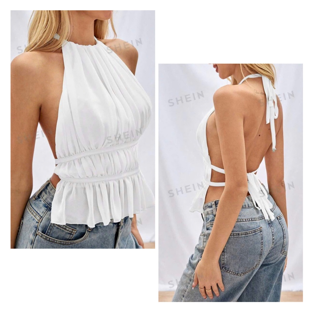 ( SẴN SHIP - KHÔNG CẦN LÙI SIZE - ORDER SHEIN ) NOMY TOP - Áo croptop dáng yếm cột dây lưng Y2K