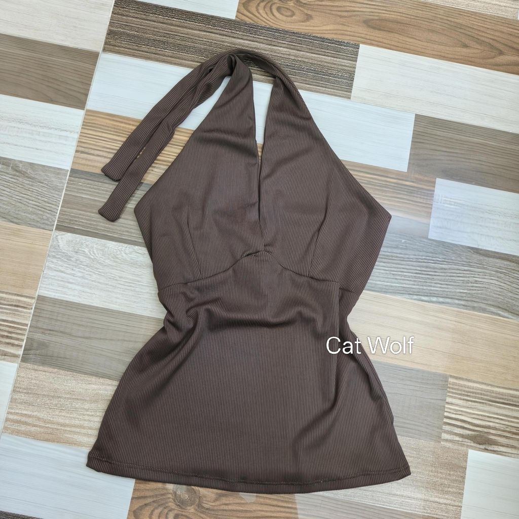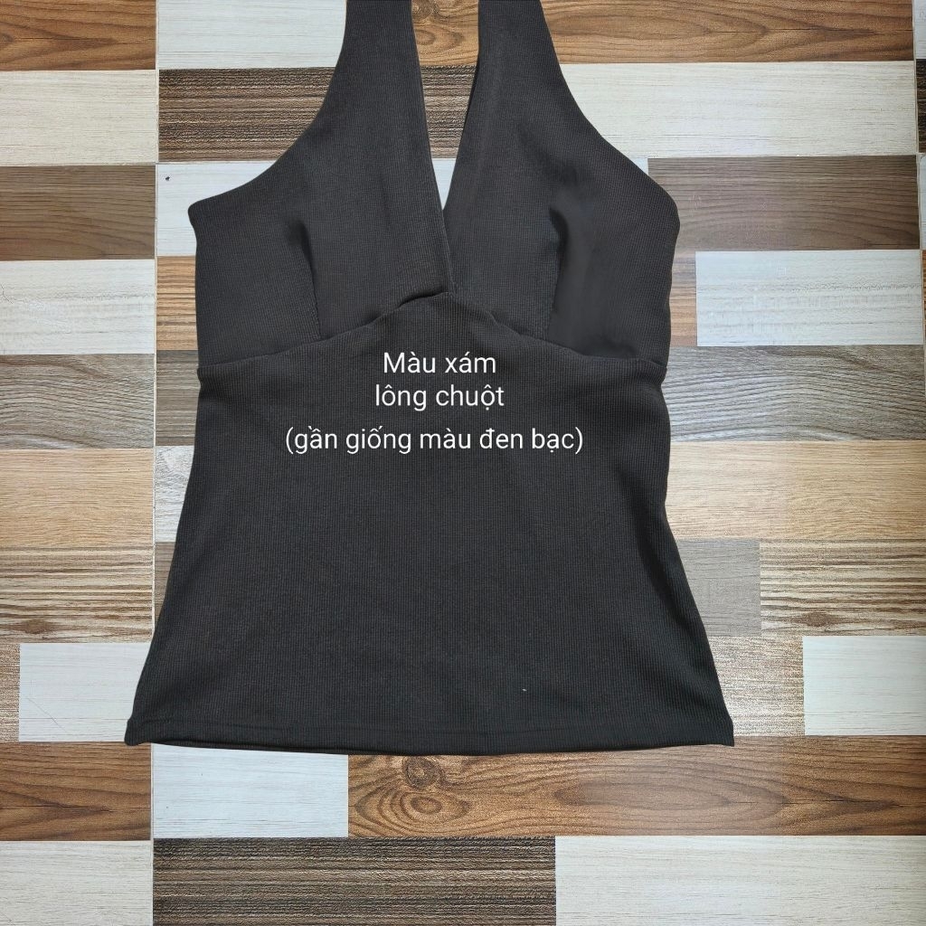 (Có size lớn) Áo thun kiểu cổ tim yếm thắt nơ hở lưng Áo cổ yếm hai dây ôm body sát nách tôn dáng hở vai