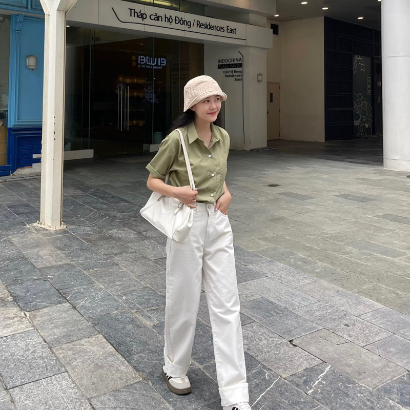 ÁO SƠ MI NỮ NGẮN TAY - HEE BY OHI - Màu Trà Xanh Matcha Green Tea Cotton Chống Nhăn (heebyohi)