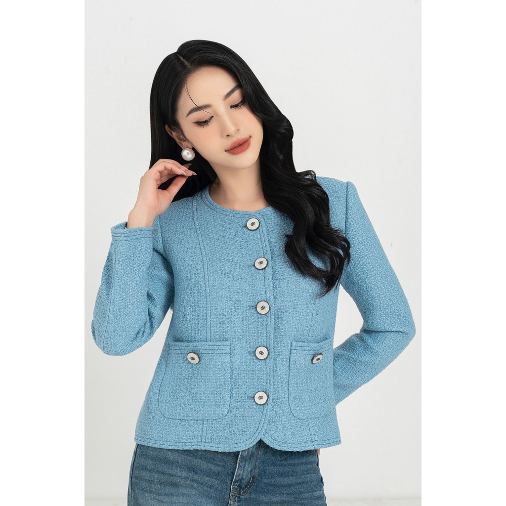 Áo Dạ Tex Nữ Thiết Kế Cổ Tròn Đột Chỉ Thời Trang Thanh Lịch By LEMIA Design - AT016