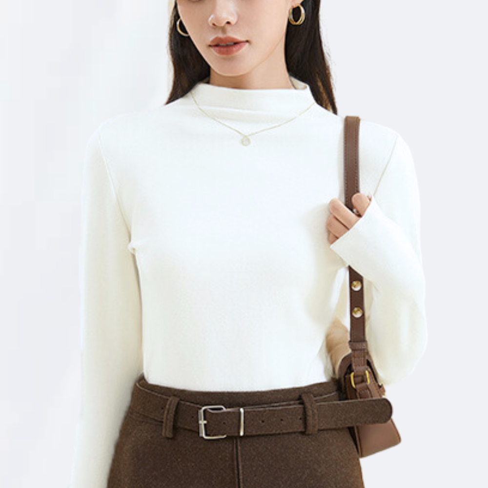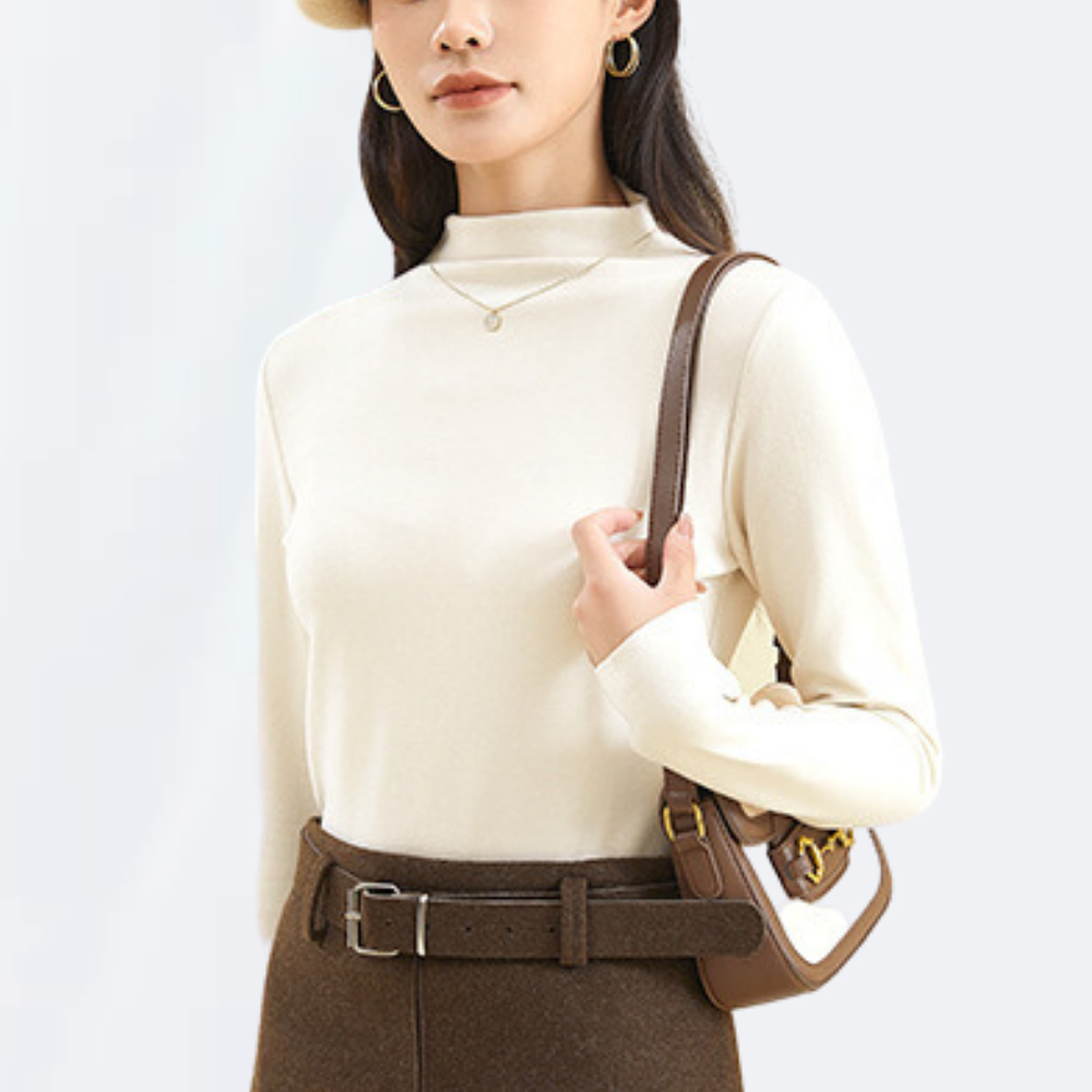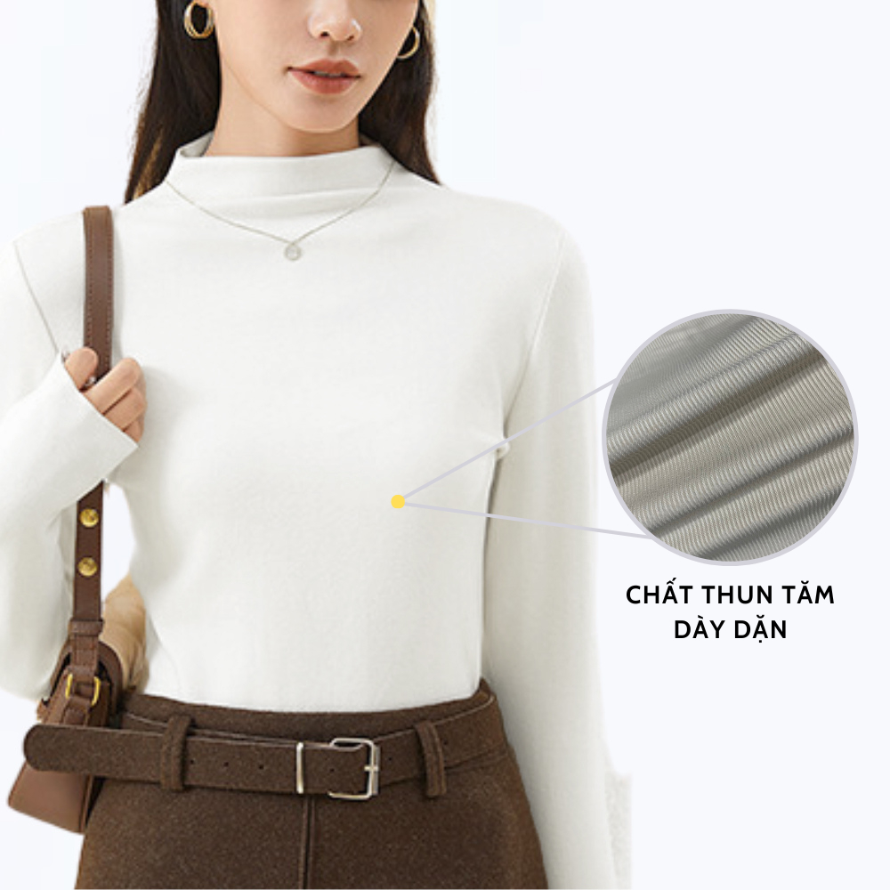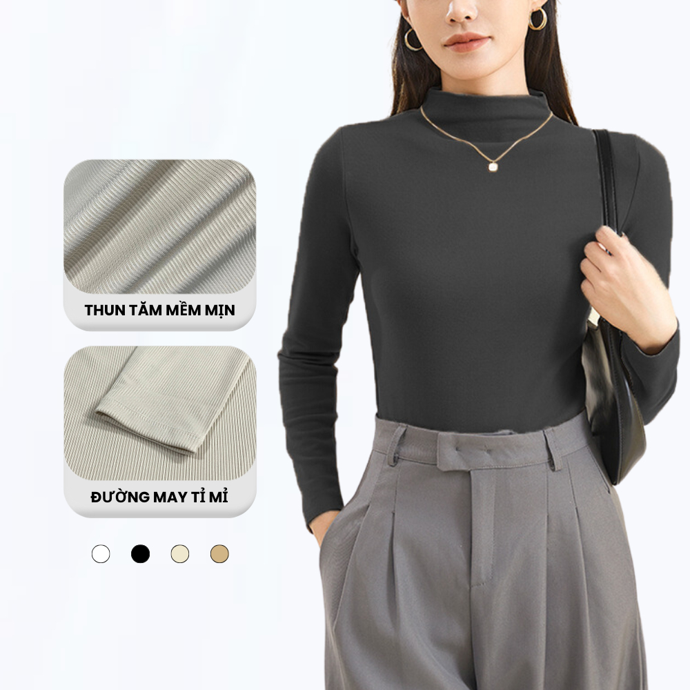 Áo Giữ Nhiệt Nữ Thun Tăm Cổ Cao Dài Tay Dáng Ôm Co Giãn Madela, Áo Thun Nữ Dài Tay Cổ Cao Ôm Body Giữ Nhiệt Thu Đông