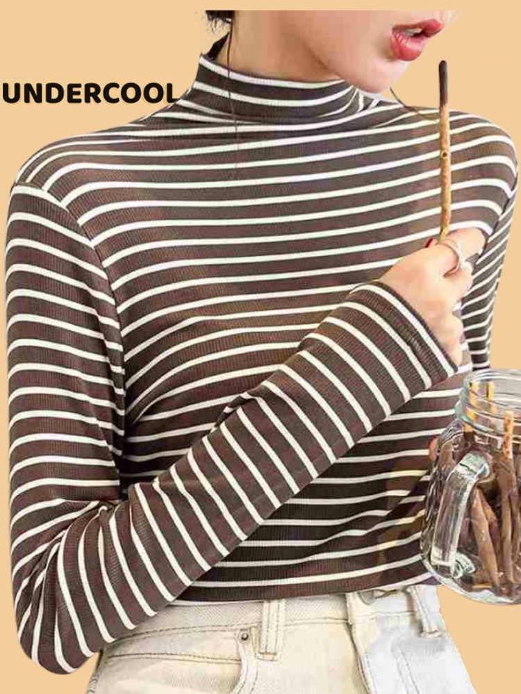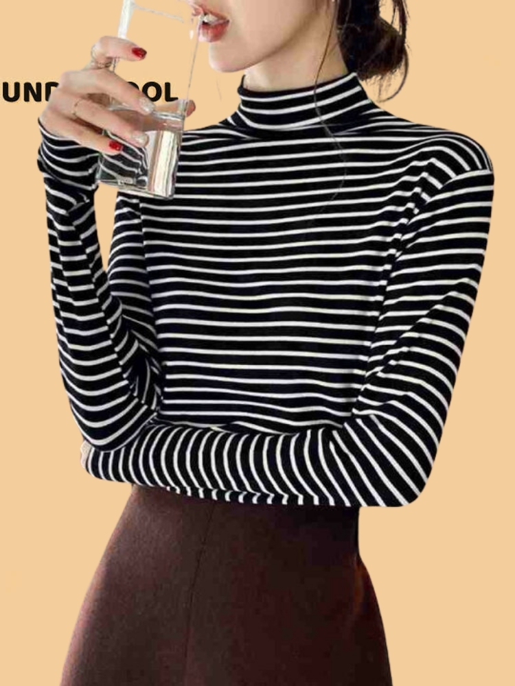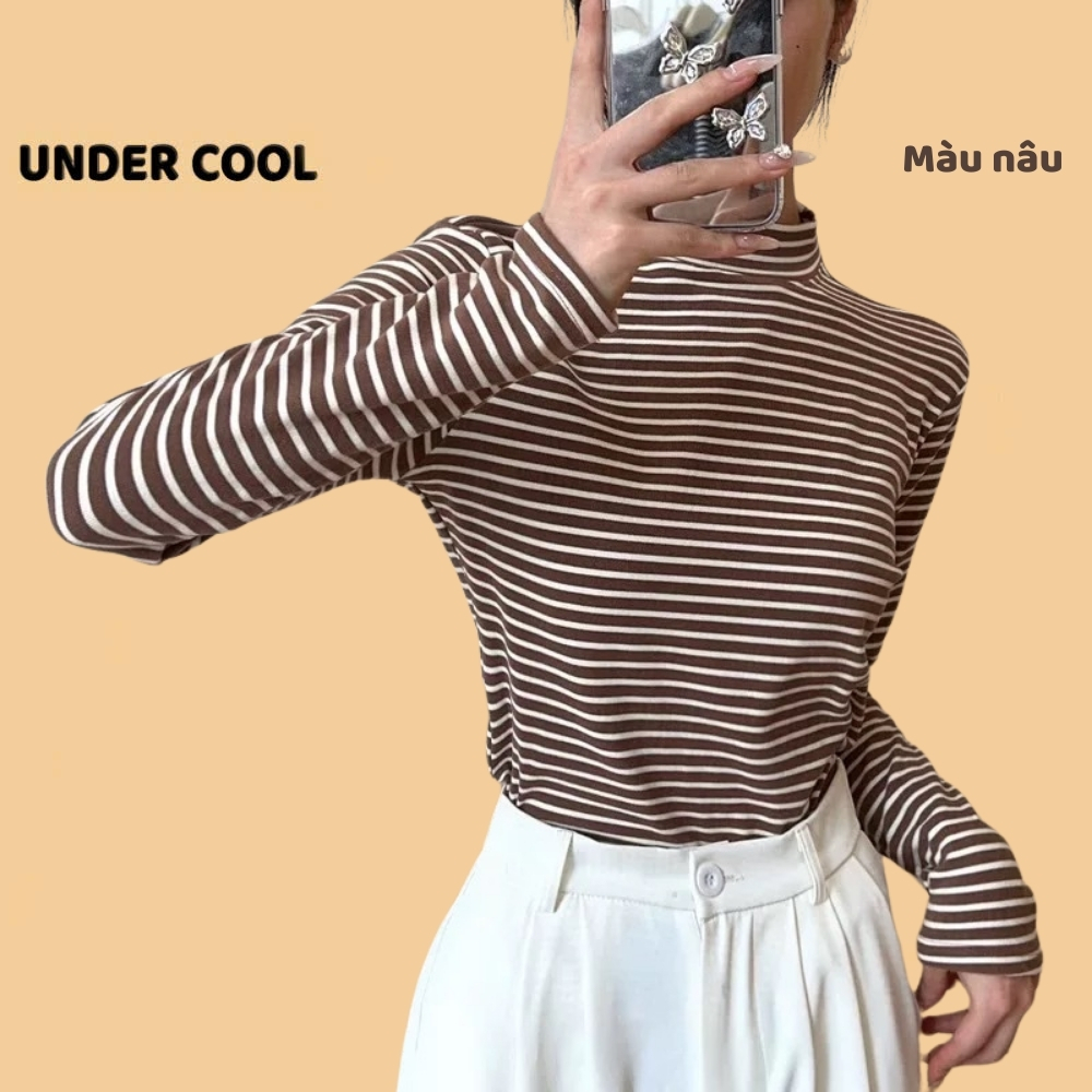 Áo Giữ Nhiệt nữ cổ cao tay dài sọc ngang thời trang Hàn Quốc UNDERCOOL giữ ấm mùa thu đông chất liệu mềm mại ADT25