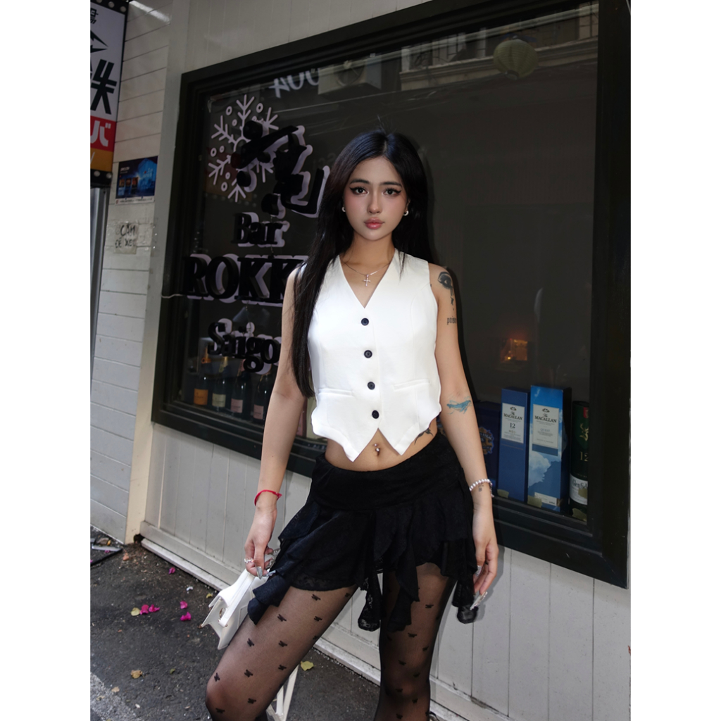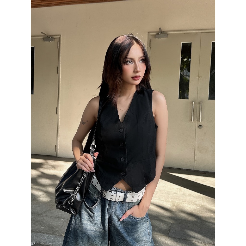 Áo Gile Nữ Dáng Rộng Có Dây Rút Eo THELSTUDIOS