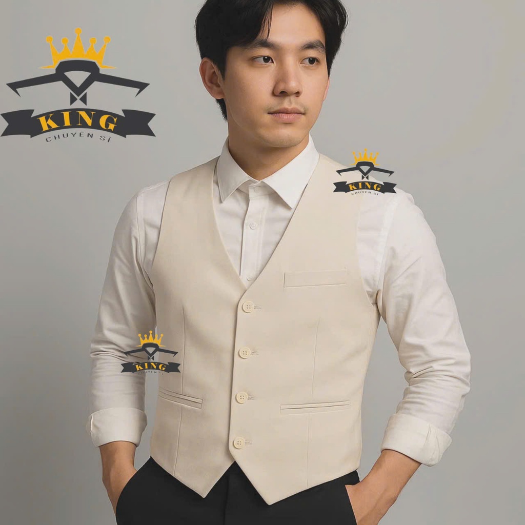 Áo Gile Nam KING caravat ghile hàn quốc 4 nút màu Đen Đô kết hợp vest khỉ đồng phục nhân viên phục vụ Z10