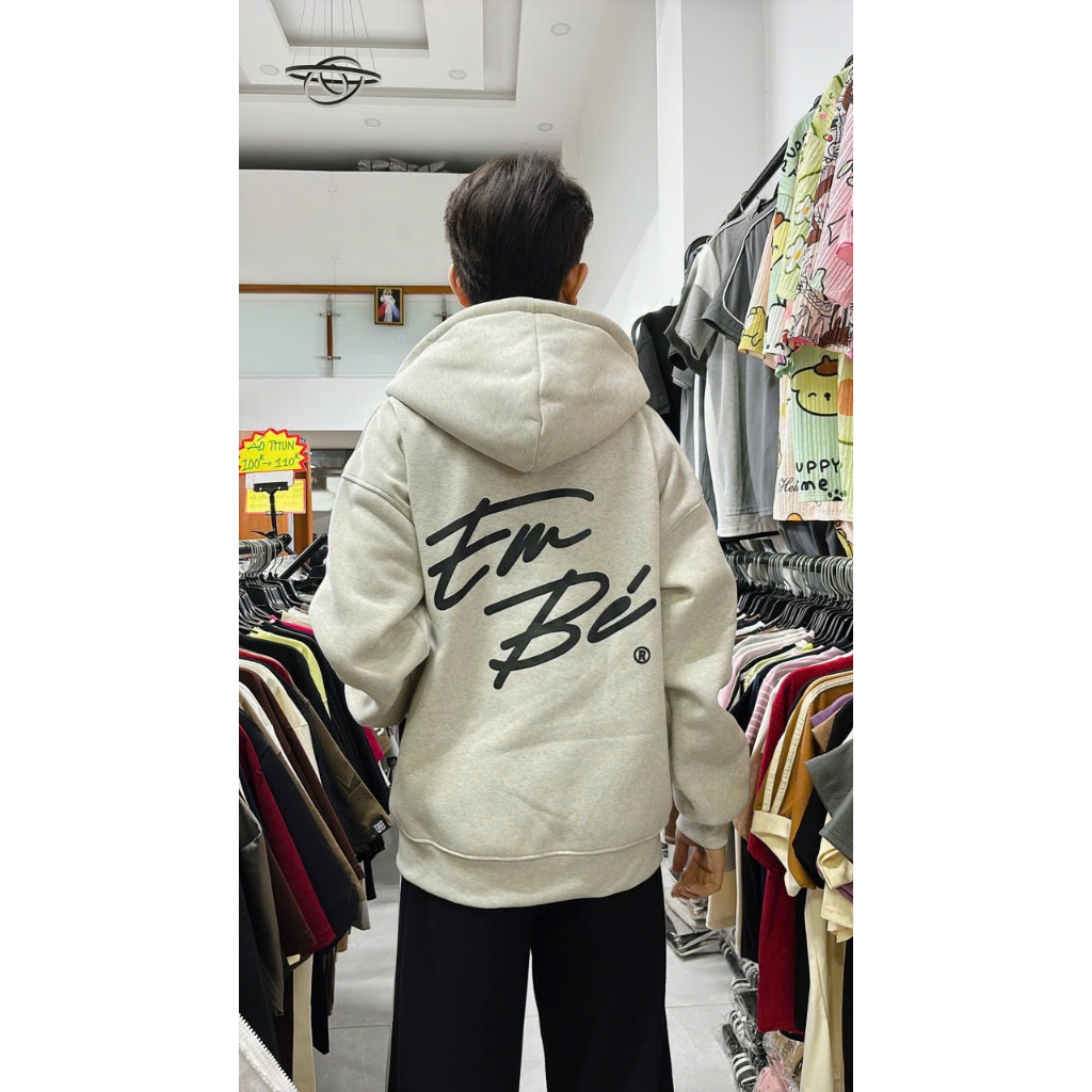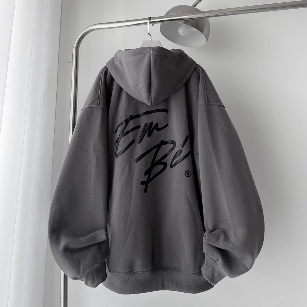 Áo Khoác Hoodie in chữ nổi EM BÉ form rộng khoác ngoài unisex nam nữ chất vải nỉ bông dày dặn bigsize thu đông
