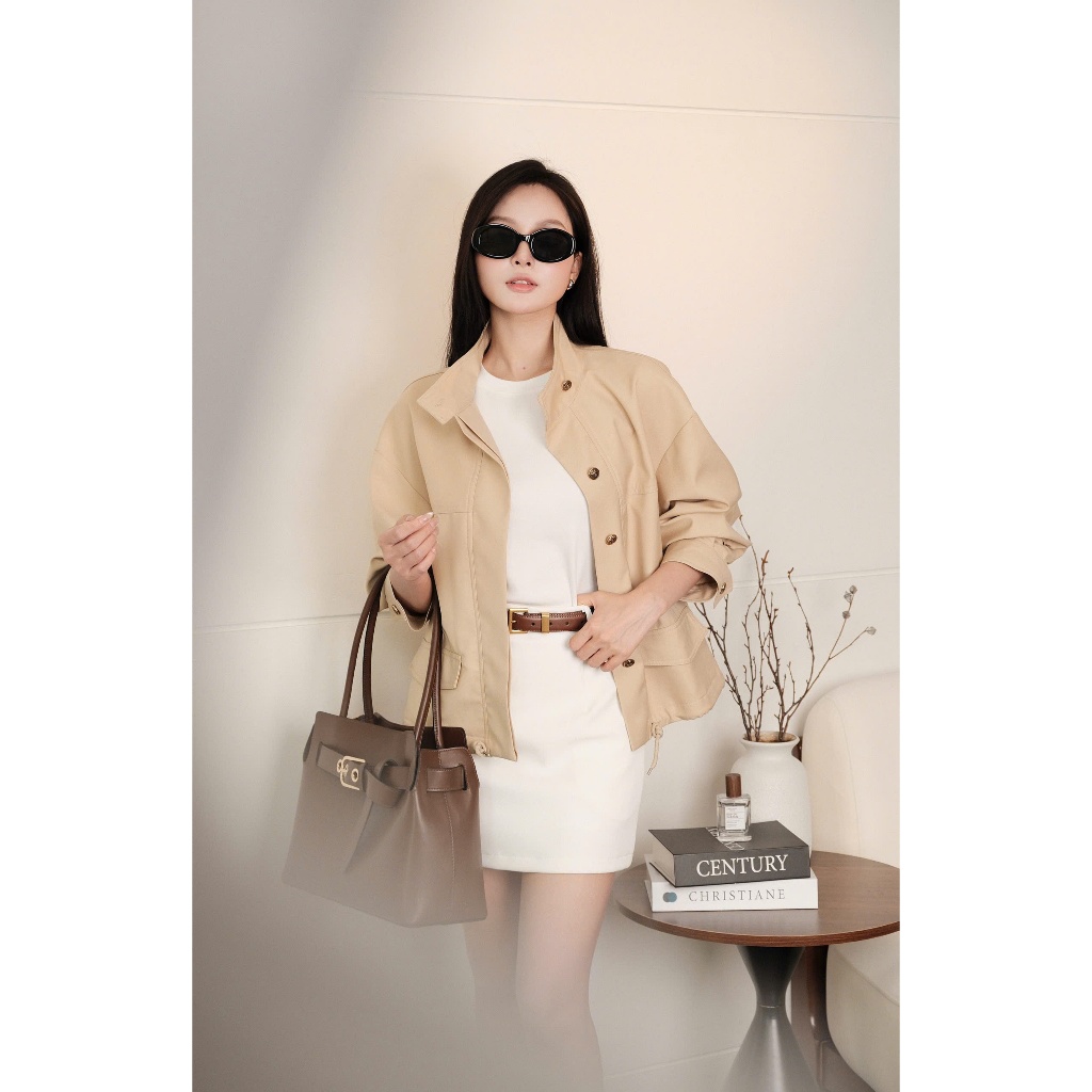 Áo Khoác Nữ Jacket Dáng Ngắn SHEMODA PROTECTIVE JACKET Kaki 2 Lớp Sang Trọng