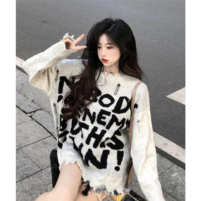Áo Len Sweater Form Rộng Cắt Xẻ Chất Liệu Dệt Kim Co Giãn Thoải Mái Hàng Loại 1 Cao Cấp