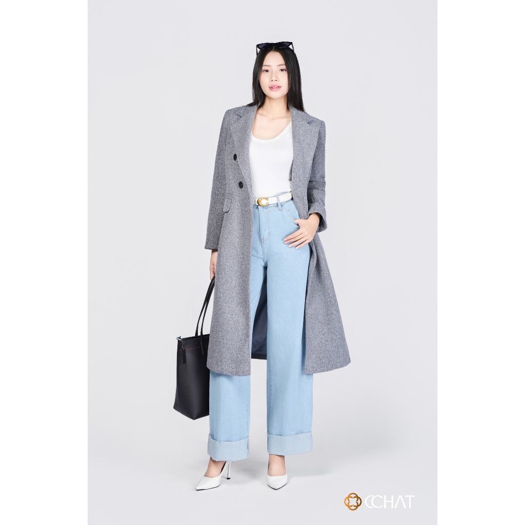 Áo Măng Tô 𝐂𝐂𝐇𝐀𝐓 Dáng Suông Dài 2 Hàng Khuy Chất Liệu Dạ Cao Cấp 24MDZ2005ST