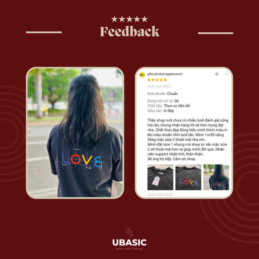 Áo Thun Nam Nữ Unisex Form Rộng Ubasic, Áo Thun Oversize Tay Lỡ Cổ Tròn Cotton Hot Trend LOVE Màu Đen Local Brand
