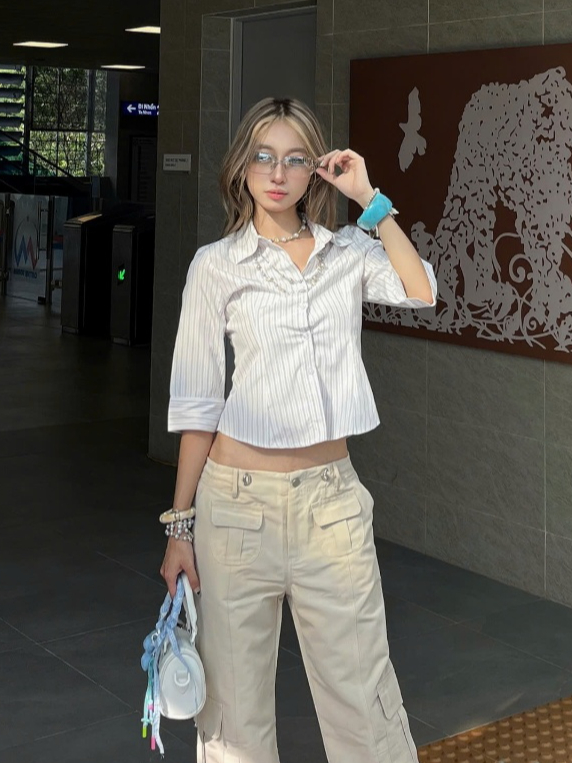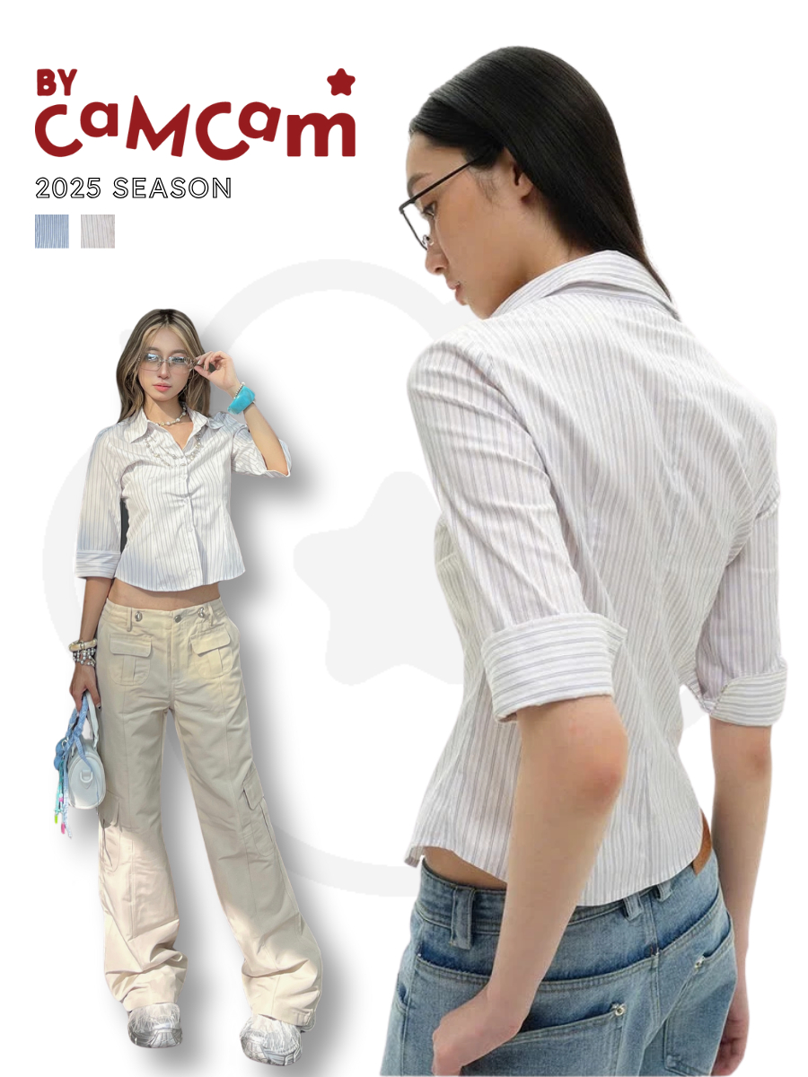 Áo Sơ Mi Kẻ Tay Lỡ 𝑩𝒚𝒄𝒂𝒎𝒄𝒂𝒎 Hàn Quốc Streetstyle Cho Nữ AML023
