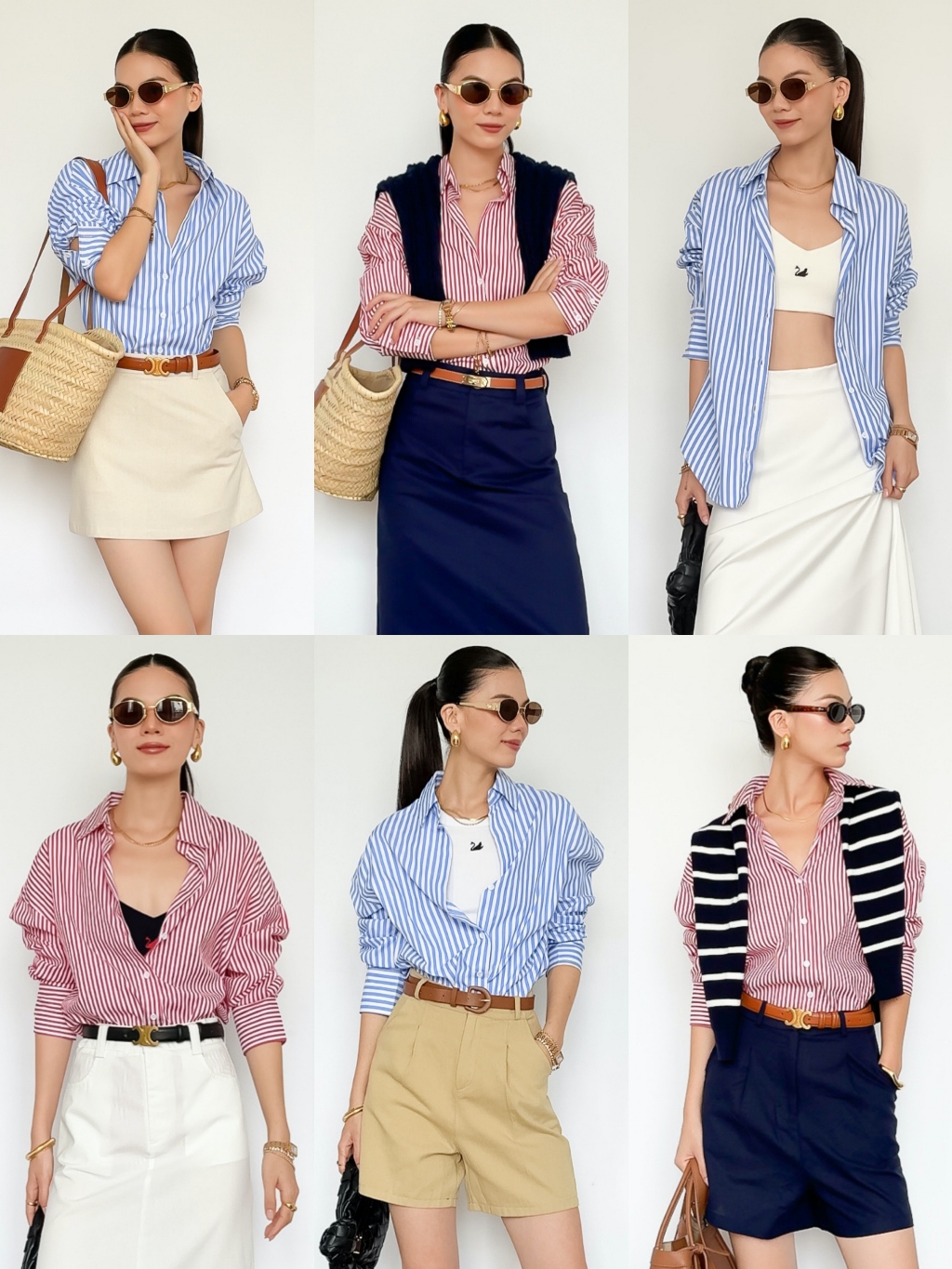 Áo Sơ Mi Nữ Không Nhăn Cotton Poly Sọc Kẻ Xanh Form Rộng Công Sở Đi Làm Đi Chơi Donia | 3875 | Lana Official