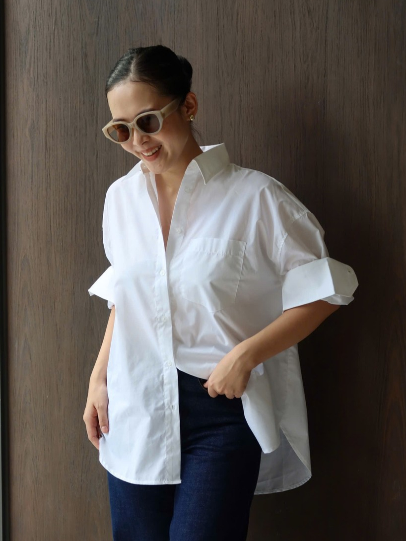 Áo Sơ Mi Oversize Cách Điệu | Poplin Oversize Shirt in White | White On Denim