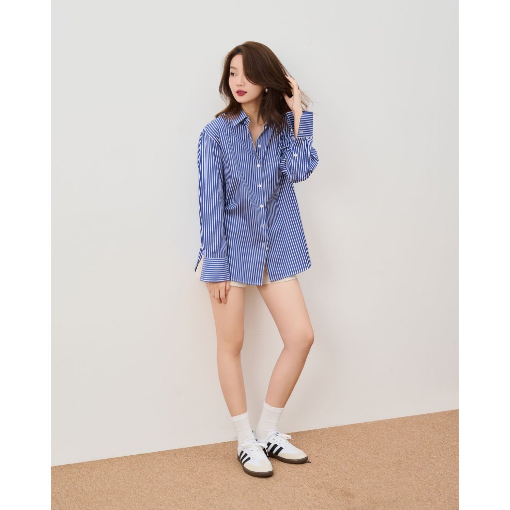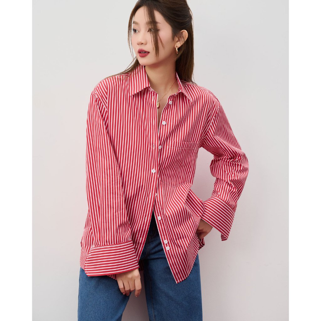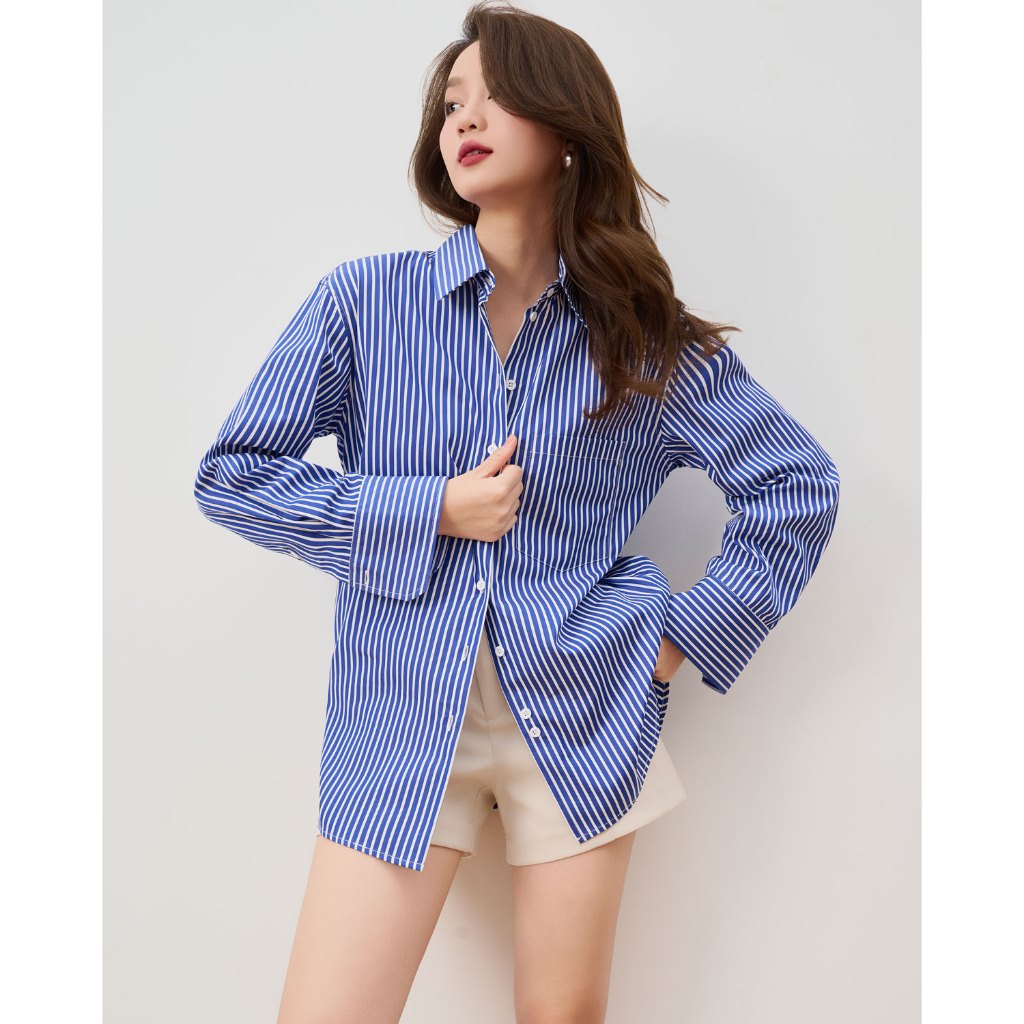 Áo Sơ Mi Sọc Nữ GILLEE Form Rộng Dáng Dài Có Túi Vải Kate Mỹ FAS361