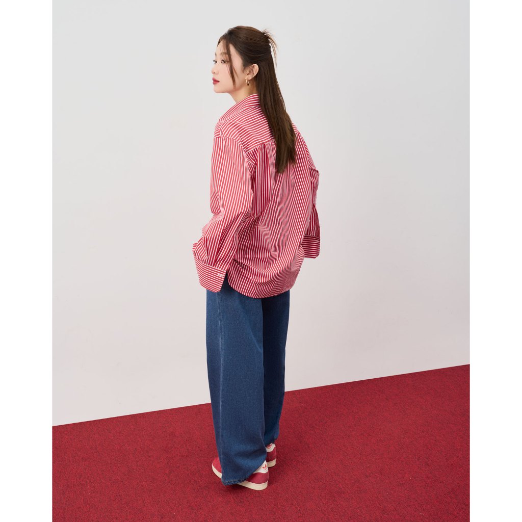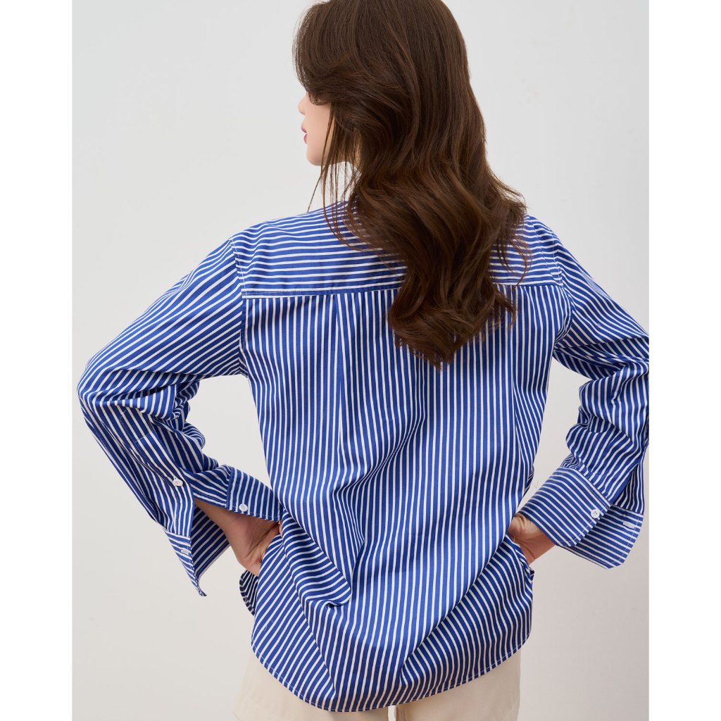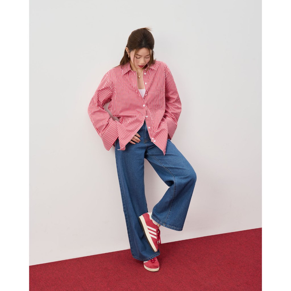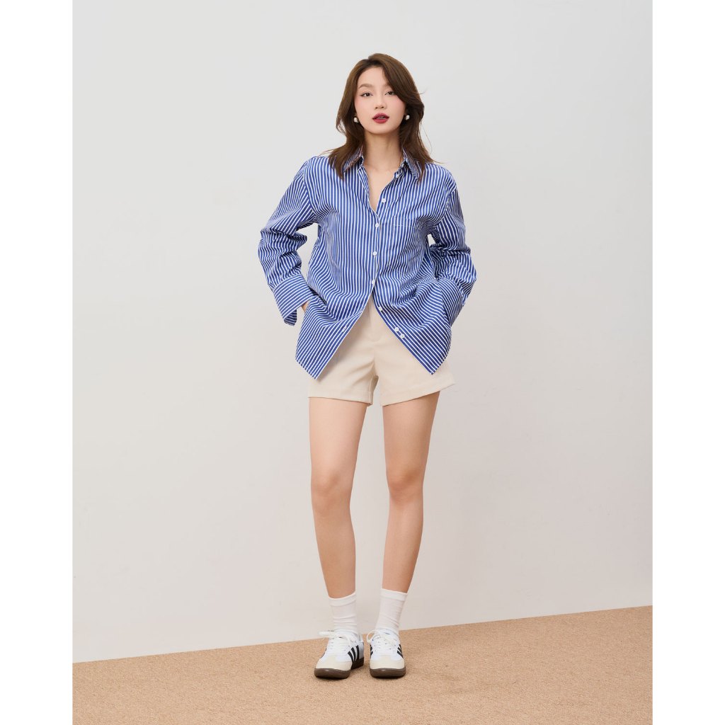 Áo Sơ Mi Sọc Nữ GILLEE Form Rộng Dáng Dài Có Túi Vải Kate Mỹ FAS361