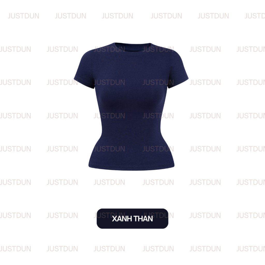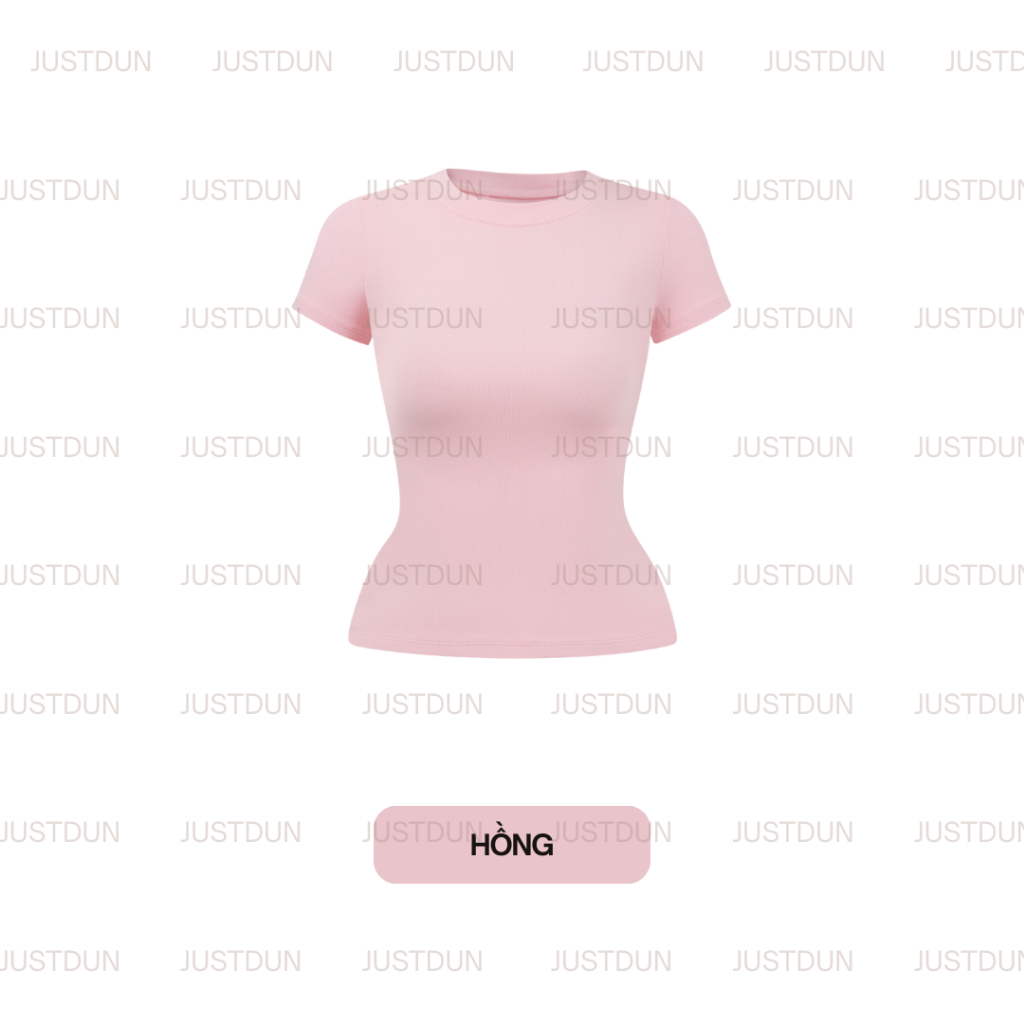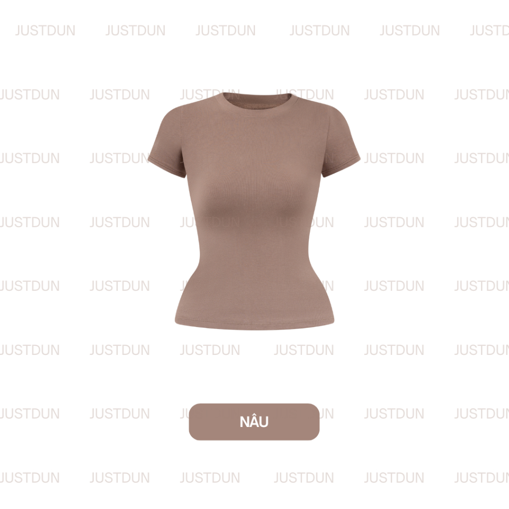 Áo Thun Nữ Ôm Body JUSTDUN B18 Cổ Tròn Tay Ngắn, Cotton Mịn Co Giãn 4 Chiều, Mềm Mại Thoáng Khí