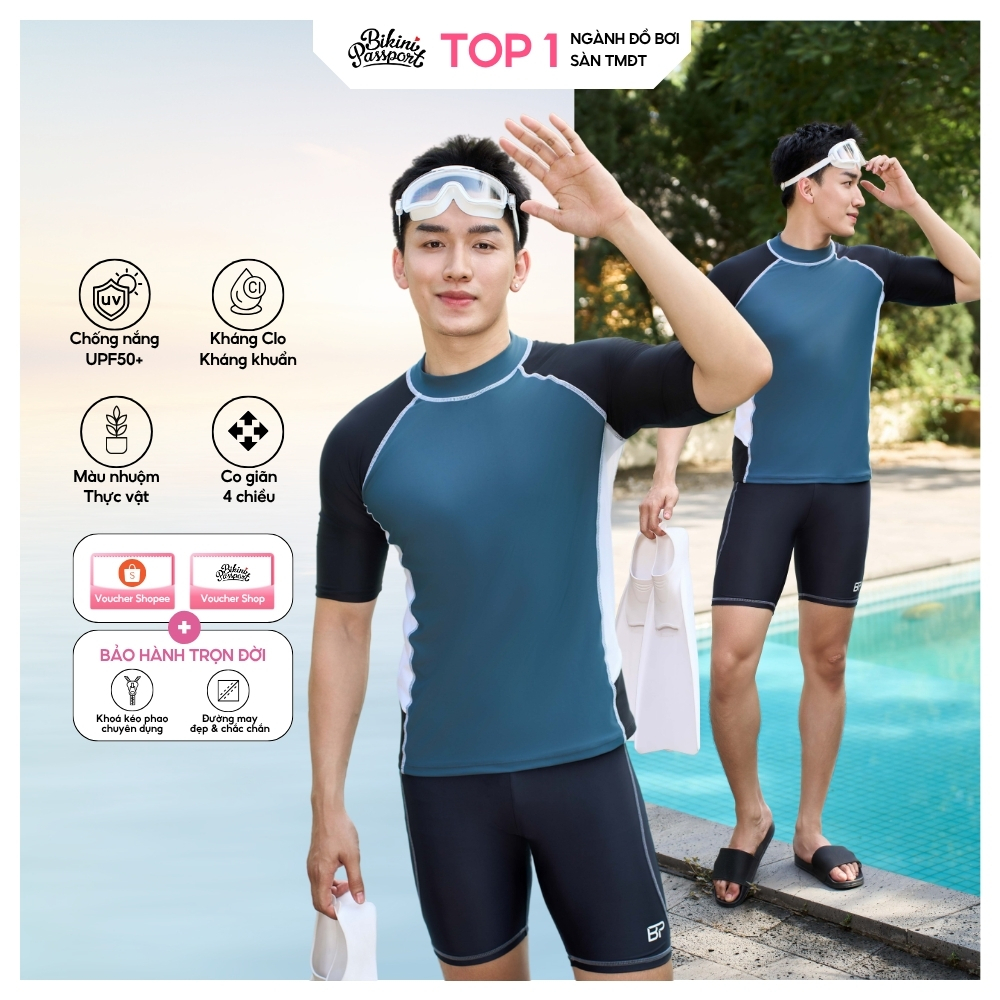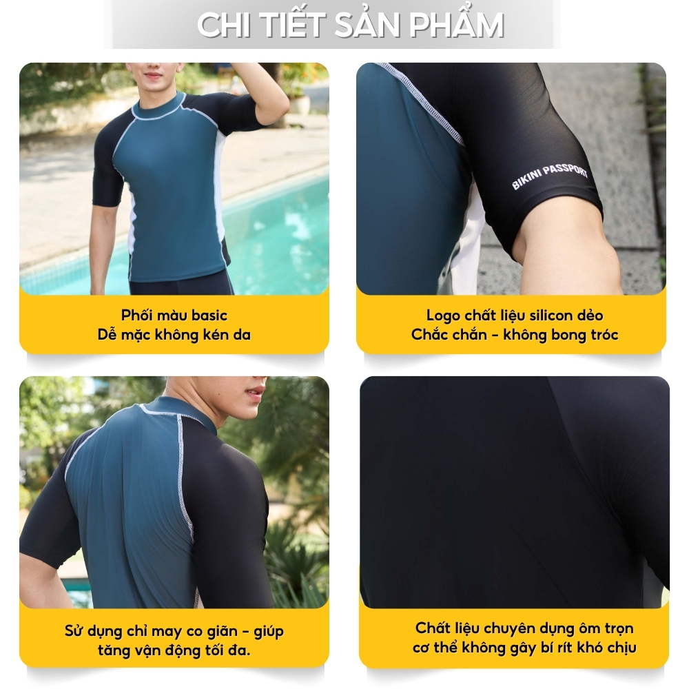 Áo bơi Nam BIKINI PASSPORT kiểu Áo tay ngắn nam phối kiểu - Đen - BS1047_BL