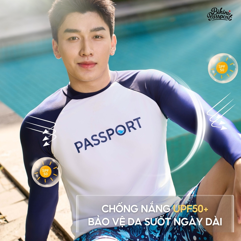 Áo bơi Nam BIKINI PASSPORT tay dài - màu Xanh Navy - BS347_NV