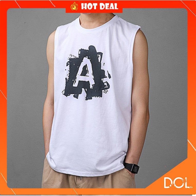 Áo ba lỗ nam phong cách in hình chữ A thể thao , chất cotton co dãn - siêu mát cho mùa hè , 2 màu trắng và đen