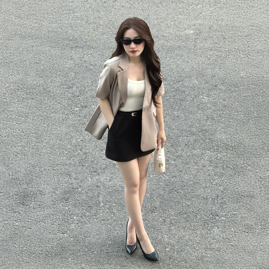 Áo blazer Dalli tay ngắn La Merci SB14S Vest 2 lớp mùa hè La Merci B14 blazer trắng mùa hè đệm vai