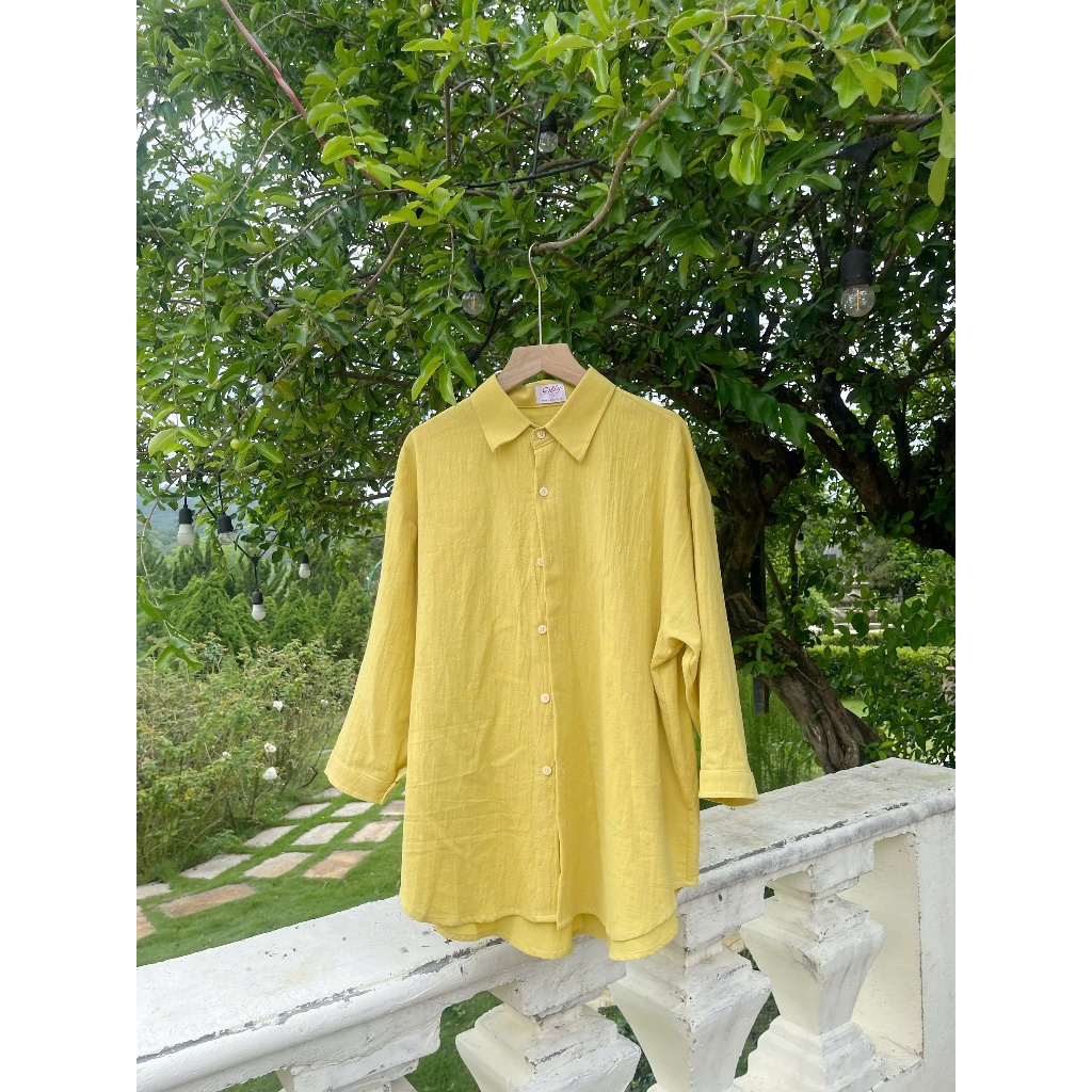 Áo cơ mi form rộng Kiểu Ulzzang, sơ mi vàng Basic đi học đi làm - GABBY