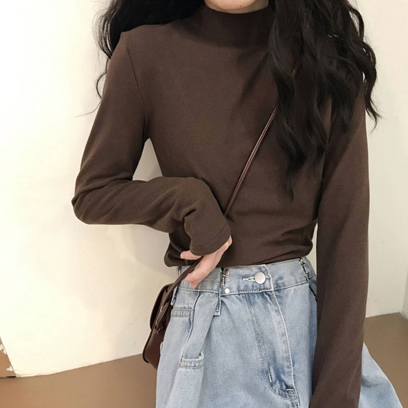 Áo cổ lọ SUXI tay dài màu trơn đơn giản phong cách vintage cho nữ