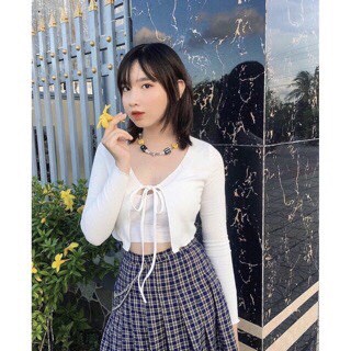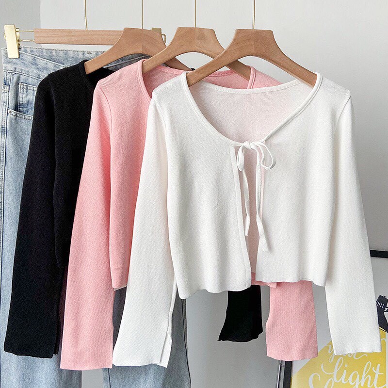 Áo cardigan tay dài cột dây thắt nơ khoác ngoài kèm ảnh thật