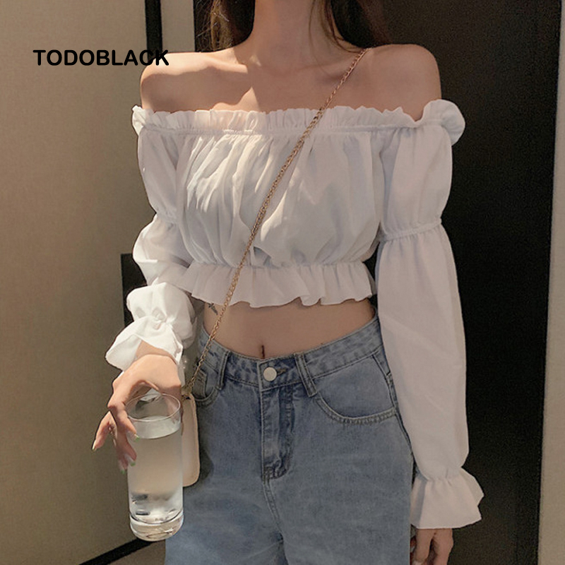 Áo croptop TODOBLACK trễ vai tay dài phồng màu trơn sexy cho nữ