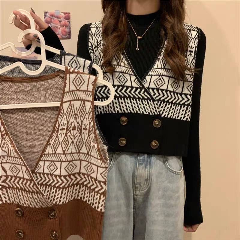 Áo gile len nữ - Áo Khoác Len nữ kiểu cổ V phong cách thời trang Hàn Quốc trẻ trung năng động dễ phối đồ
