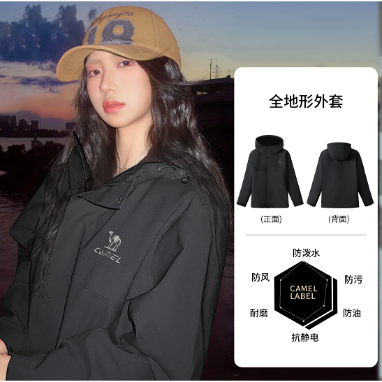 Áo khoác chắc chắn toàn cầu CAMEL CROWN dành cho nữ, Áo khoác leo núi ngoài trời có mũ trùm đầu một mảnh