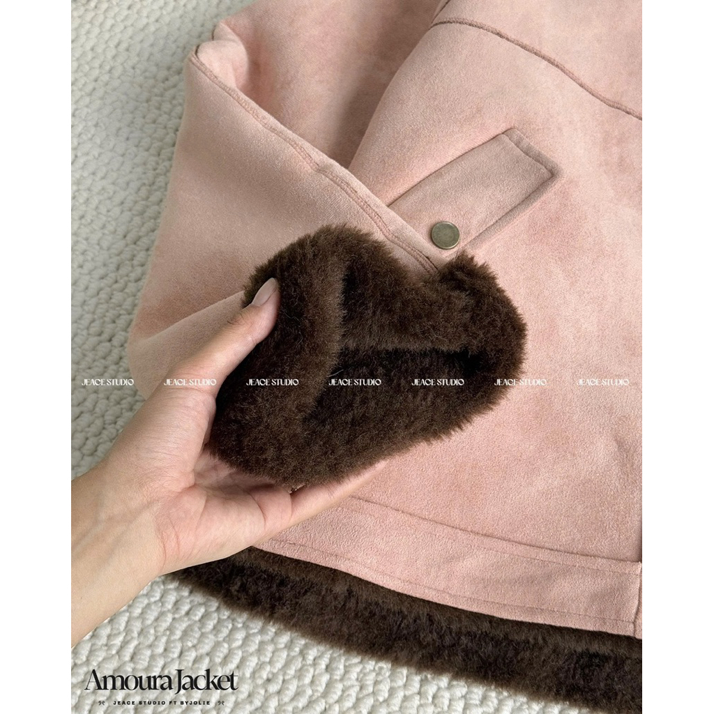 Áo khoác da lộn mịn lót lông cừu nhân tạo dày dặn freesize Amoura Jacket Jeace Studio By Jolie