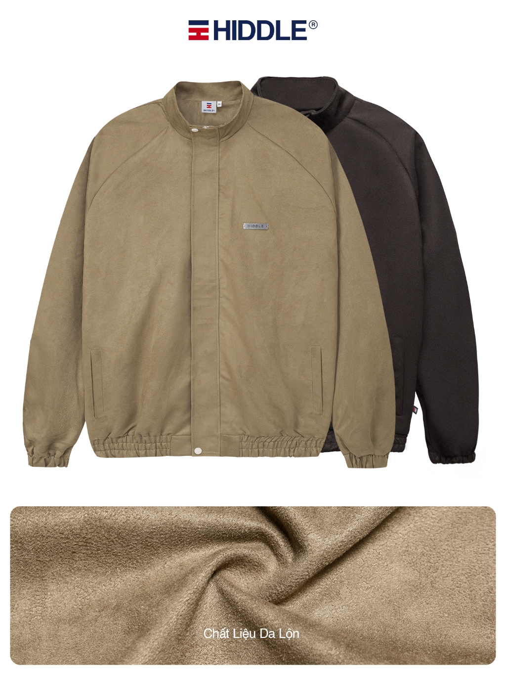 Áo khoác da lộn nam cổ trụ cao cấp HIDDLE mang được 4 mùa, có túi trong, 2 lớp dày dặn | H06-AK1