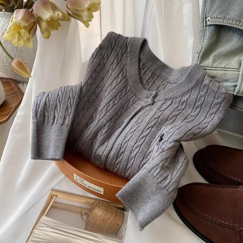 Áo len cardigan nữ cổ tròn mã 1139 phối thêu, họa tiết vặn thừng, chất len dầy dặn co giãn