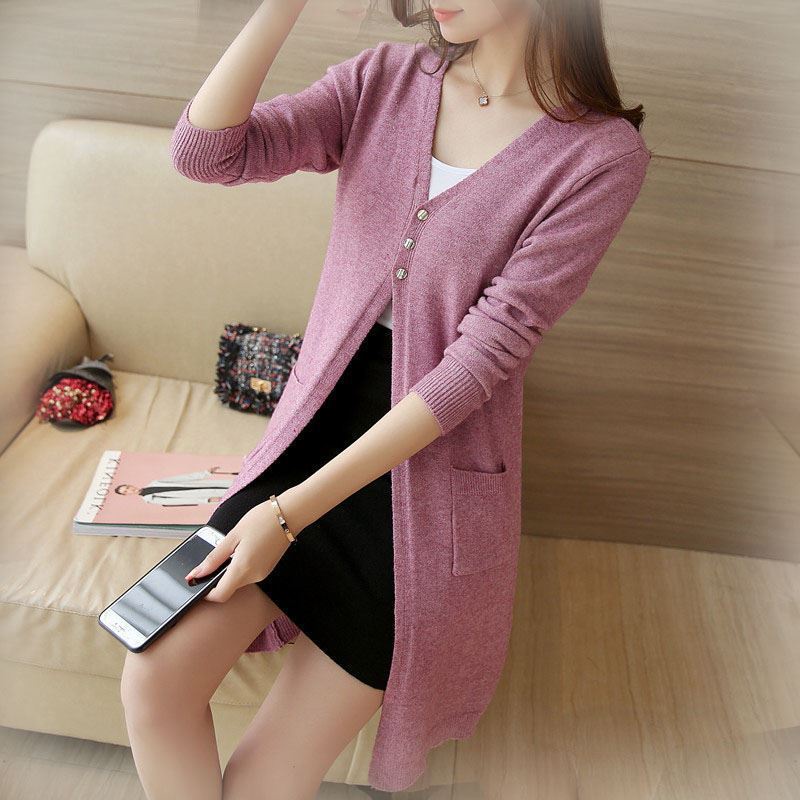 Áo len mỏng dàì tay - Áo khoác len dáng dài cổ tim 3 nút - Danangsale