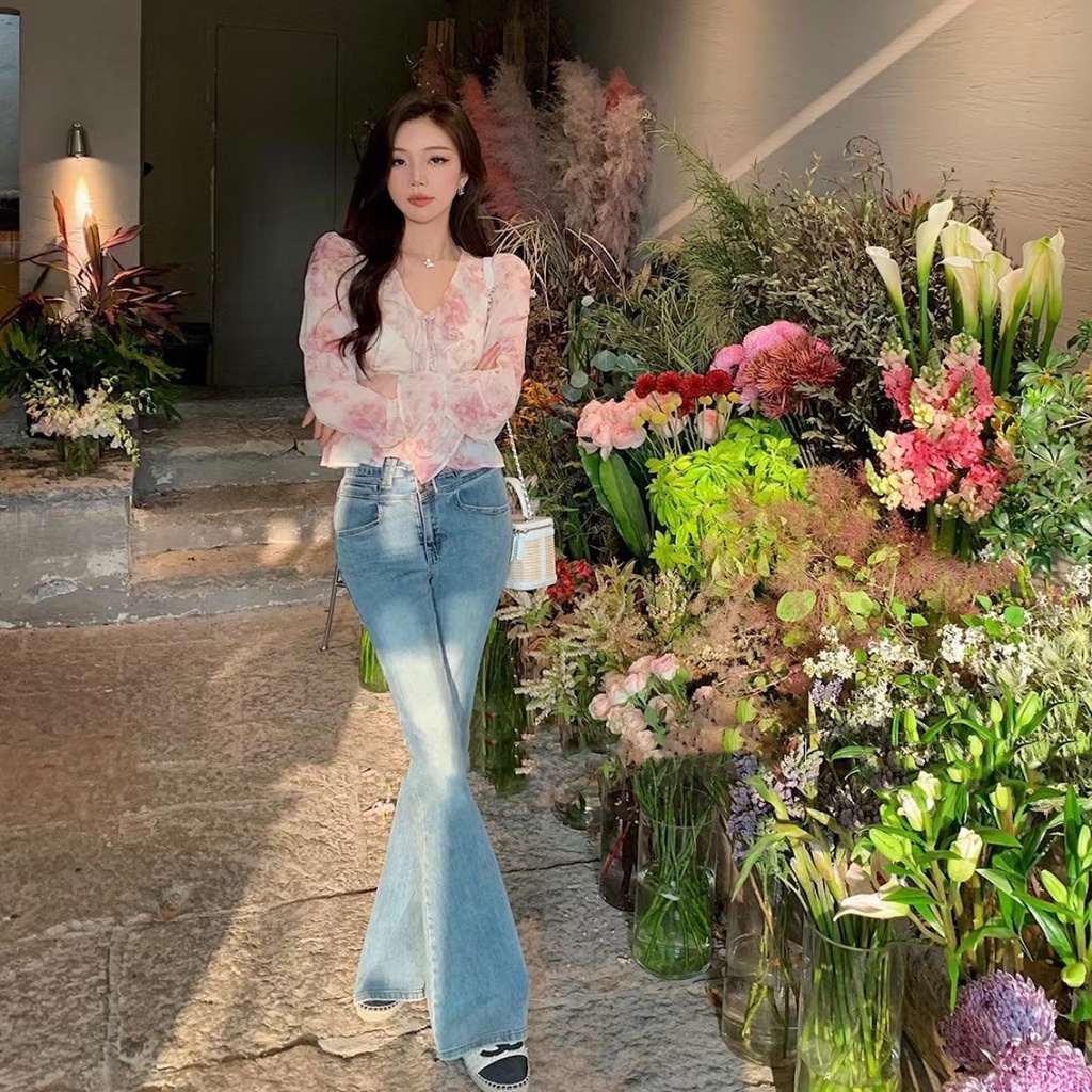 Áo peplum Dài Tay In Hoa Phong Cách Pháp Cho Nữ
