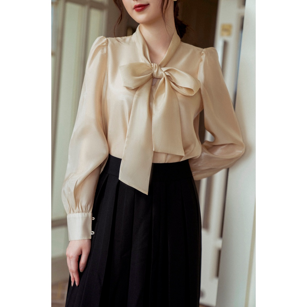 TIINSTORE Áo sơ mi 2 lớp cổ thắt nơ tay măng sec somi thiết kế công sở tiểu thư sang chảnh AHD438