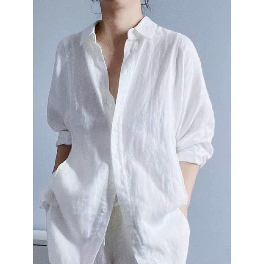 Áo sơ mi nữ công sở form rộng rớt vai - Vải Linen bột mềm mát - Form áo suông rộng trẻ trung ASM01