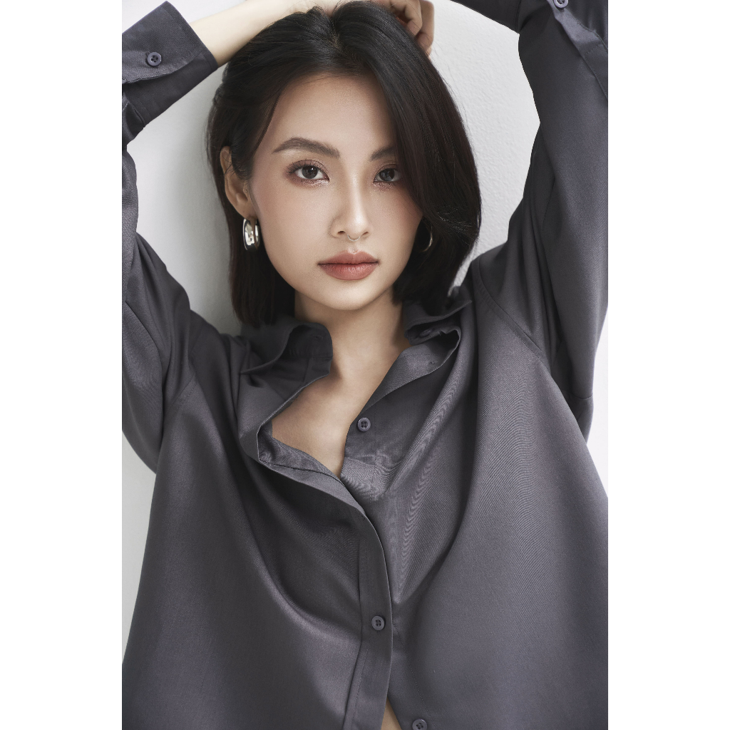 Áo sơ mi nữ dài tay form rộng GILEE thiết kế basic xám đậm thanh lịch sang trọng chất vải cao cấp FAS291