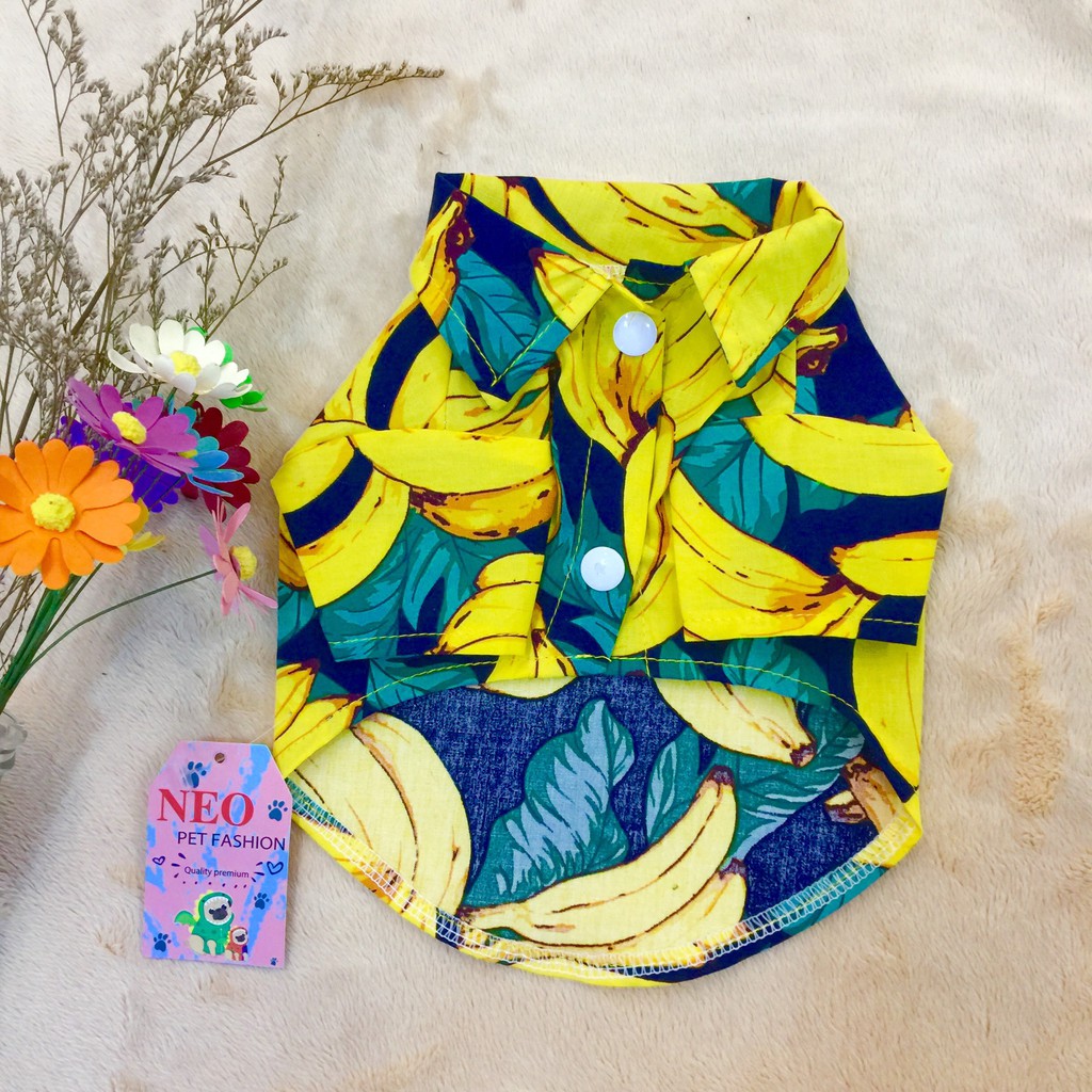 Áo sơ mi vàng hoạ tiết trái chuối dành cho thú cưng, Quần áo chó mèo LaLi Petfashion