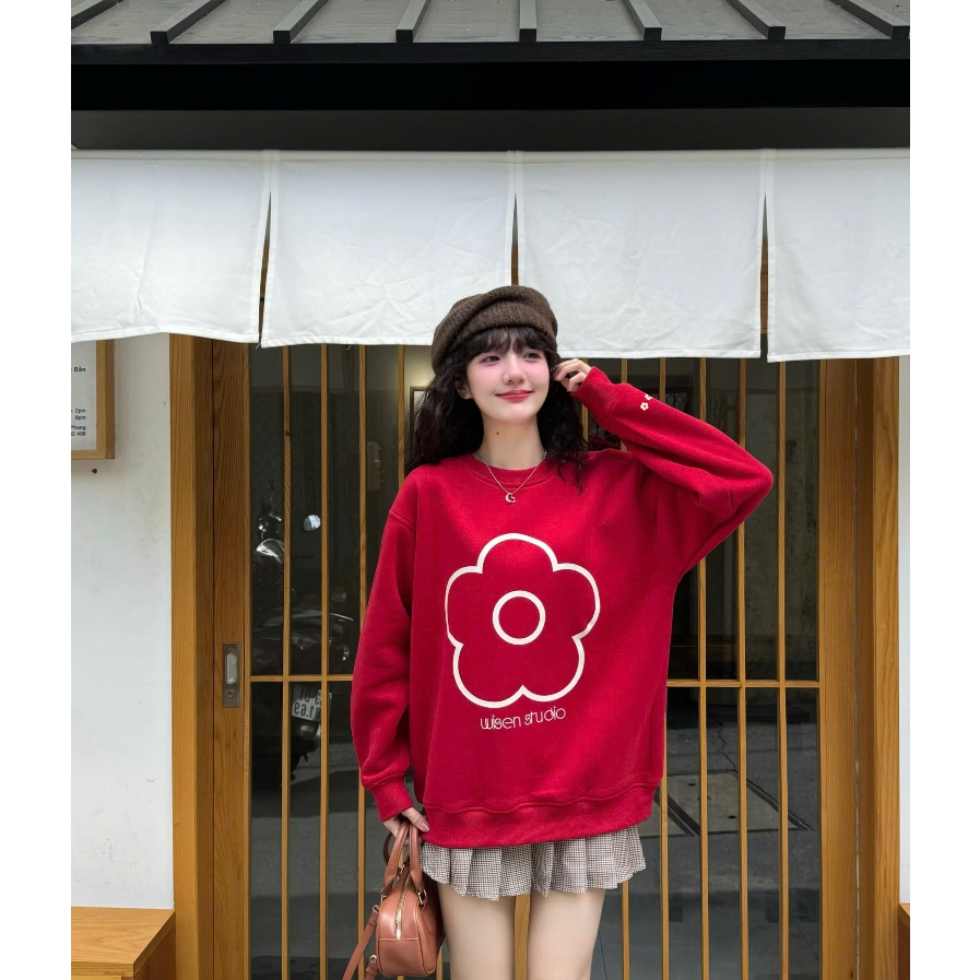 Áo sweater local brand WISEN nỉ bông dày form rộng oversize unisex mẫu Cherry Blossoms