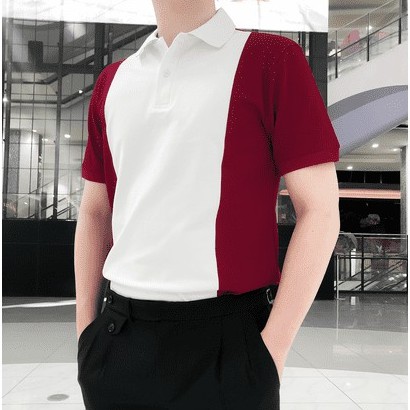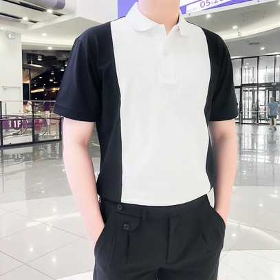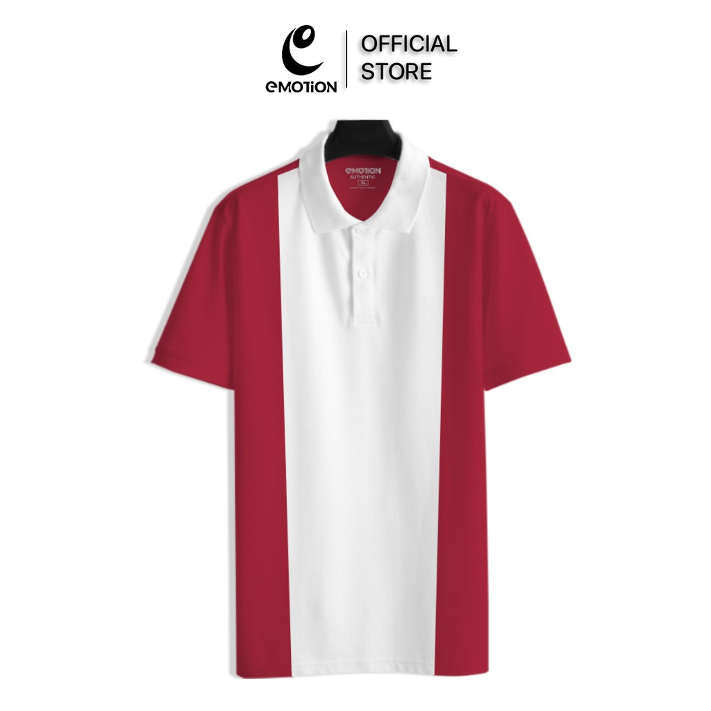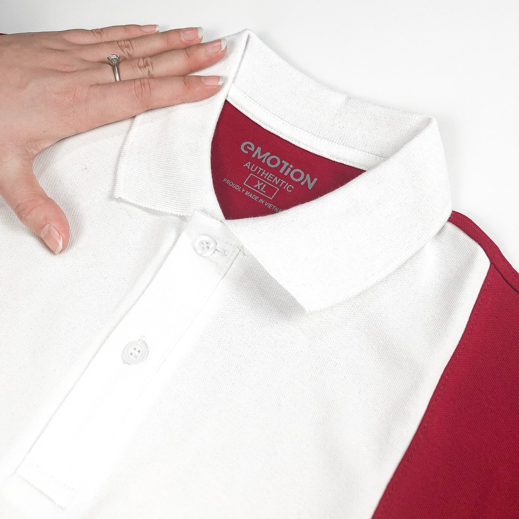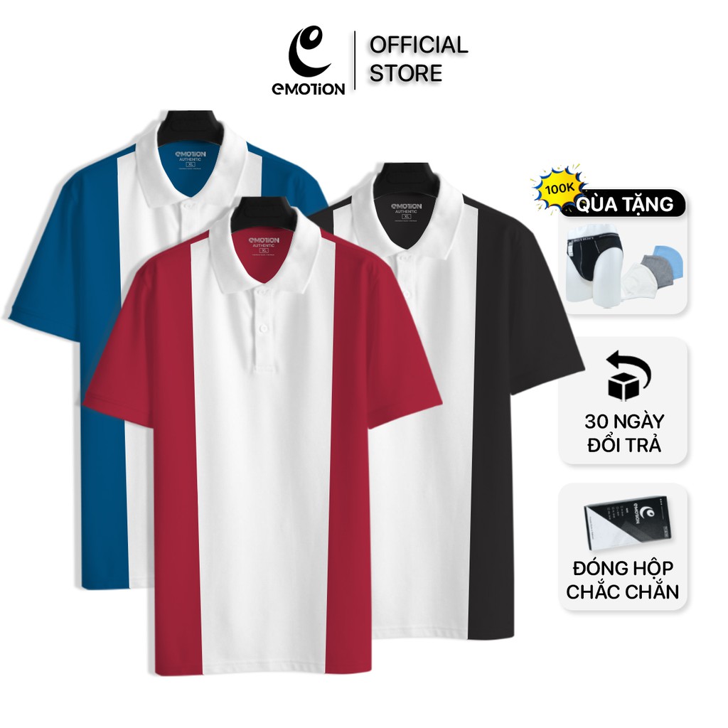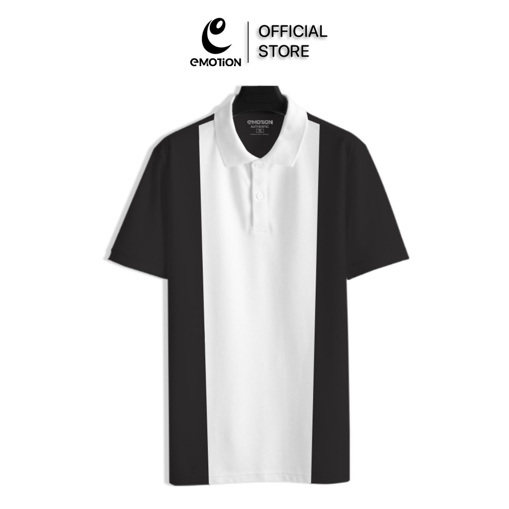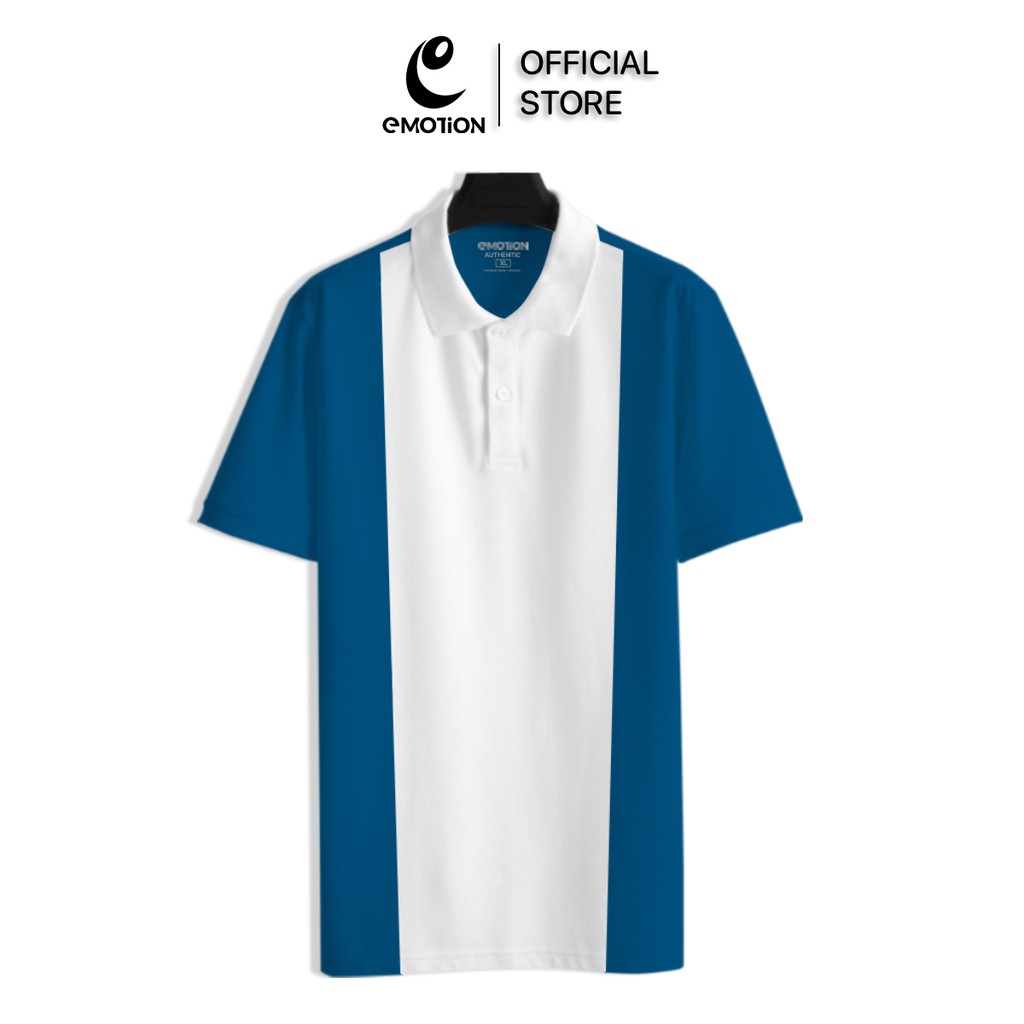 (AEM2) Áo thun Polo nam Trắng tay Màu cổ bẻ eMOTiON, Áo phông vải Cotton phối màu trẻ trung