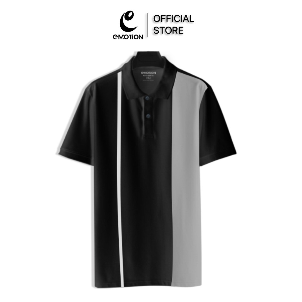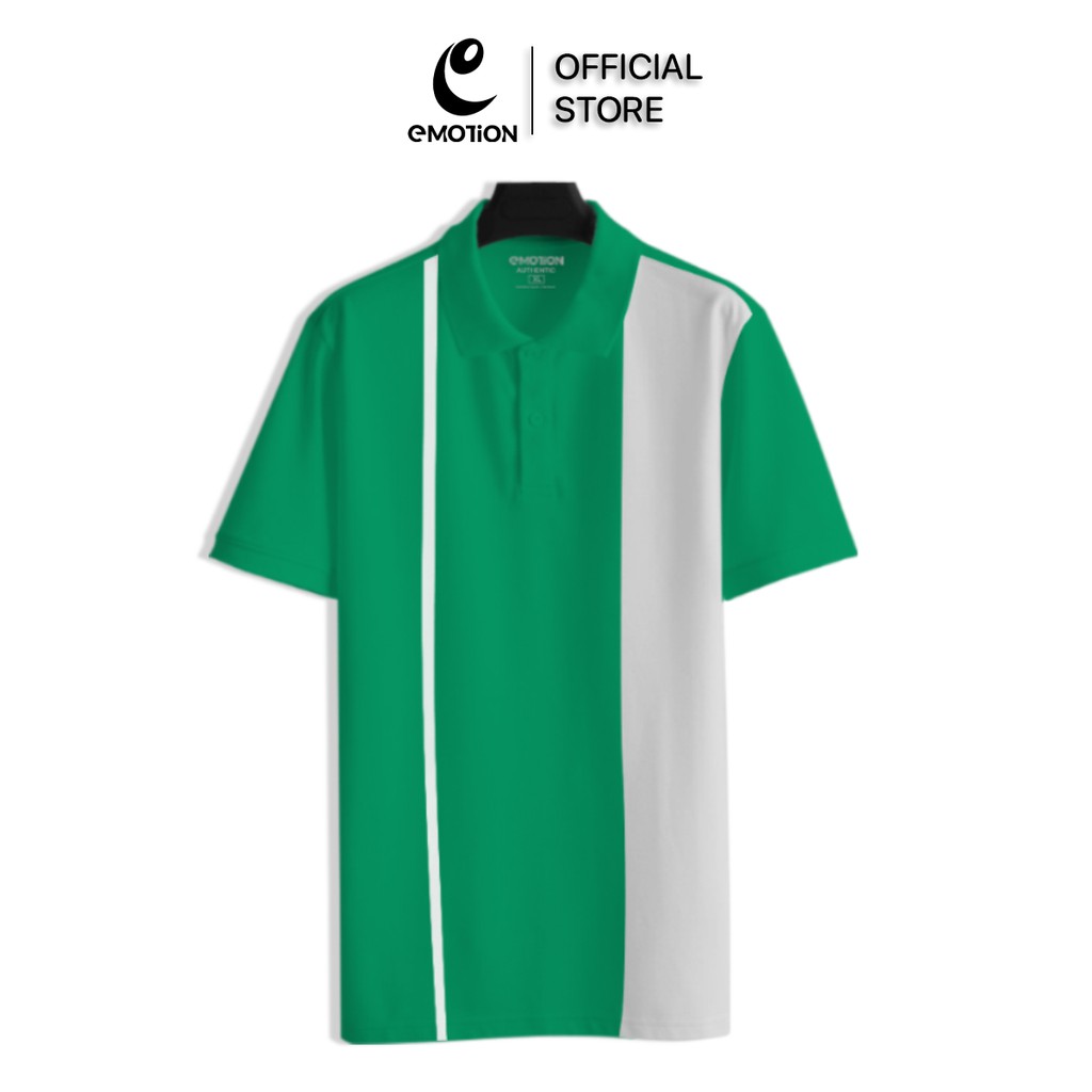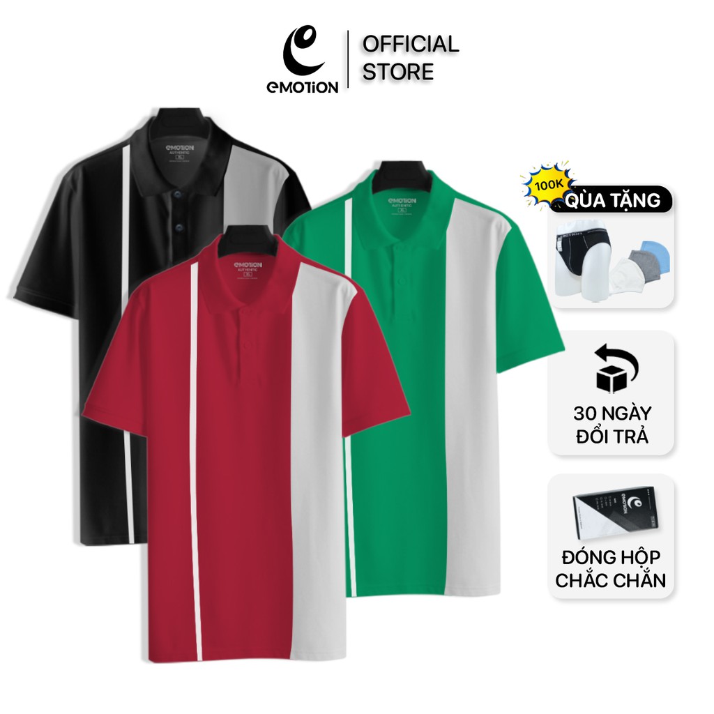 (AEM3) Áo thun Polo nam cổ bẻ kẻ nhỏ eMOTiON, Áo phông Cotton phối 2 màu trẻ trung