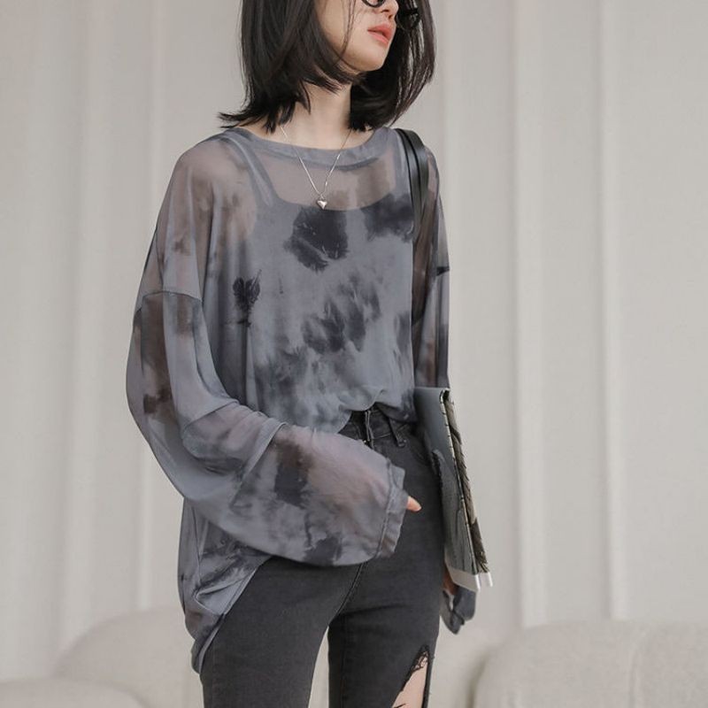 Áo thun dài tay lưới mỏng trong suốt IELGY Loose Hàn Quốc dành cho nữ