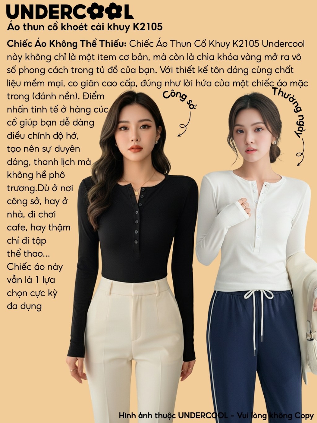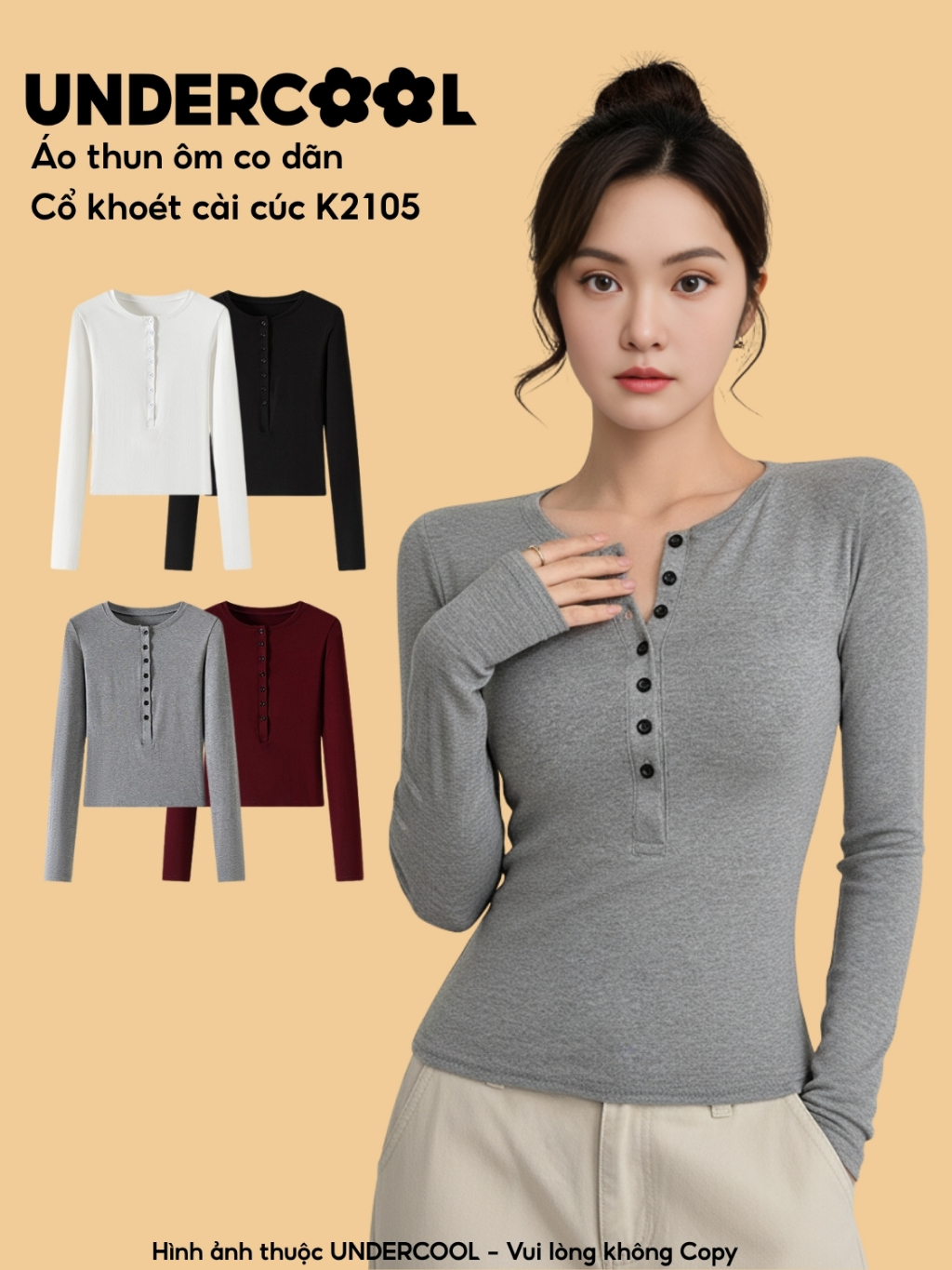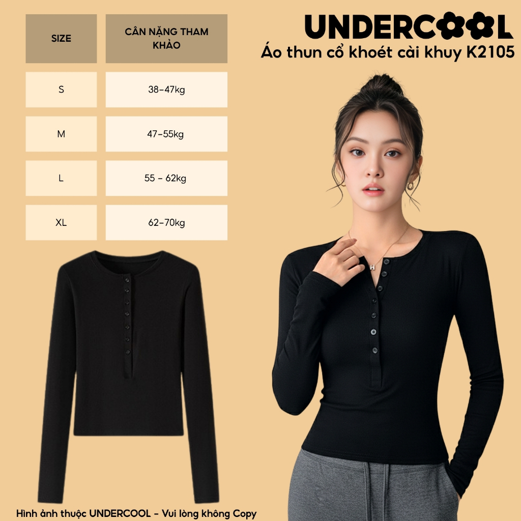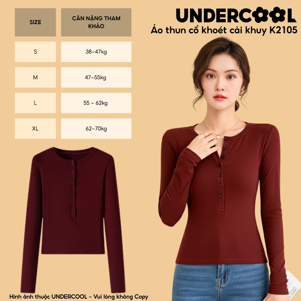 Áo thun nữ dài tay cổ khuy khoét UNDERCOOL Vải cotton co dãn mềm mại, phong cách Hàn Quốc K2105