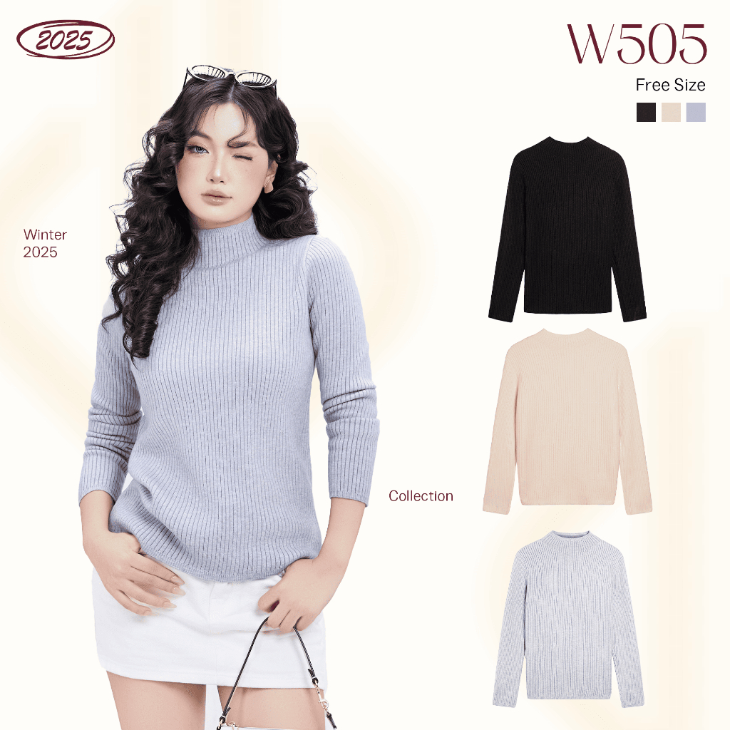 Áo Len Nữ Dệt Kim Cao Cấp Lót Lông Ấm Áp Kiểu Dáng Hàn Quốc W505