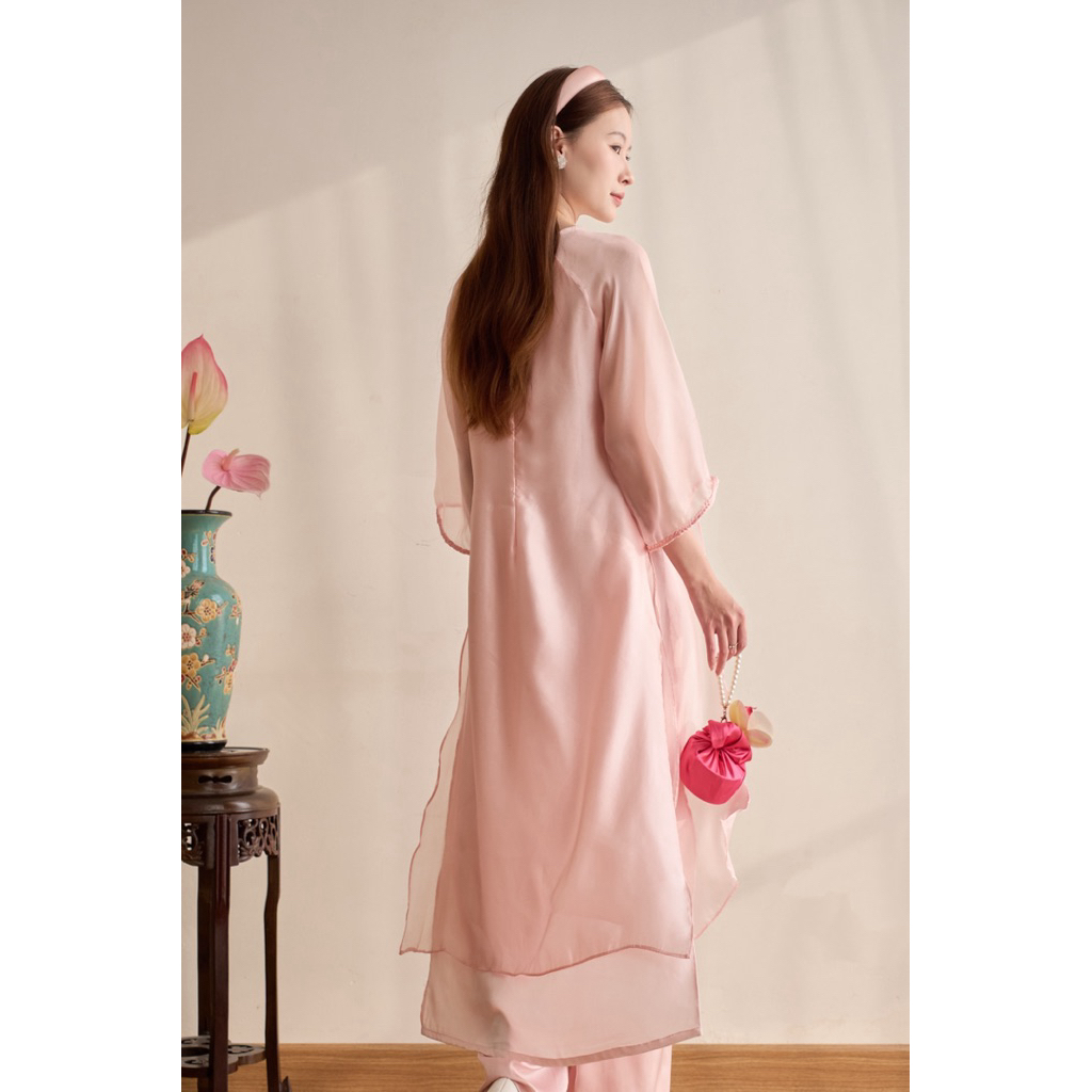 Áo dài Tết thiết kế Từ Nhiên hồng pastel chất lụa phối tơ mềm form suông 4 tà tơ bay nhẹ kèm quần lụa - SD257