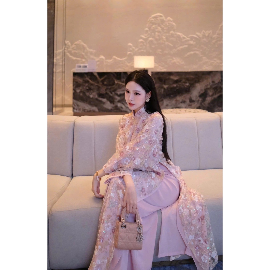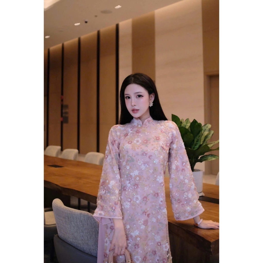 Áo dài kim sa Tết 2026, áo dài sang trọng dáng suông cao cấp