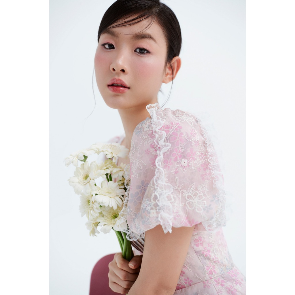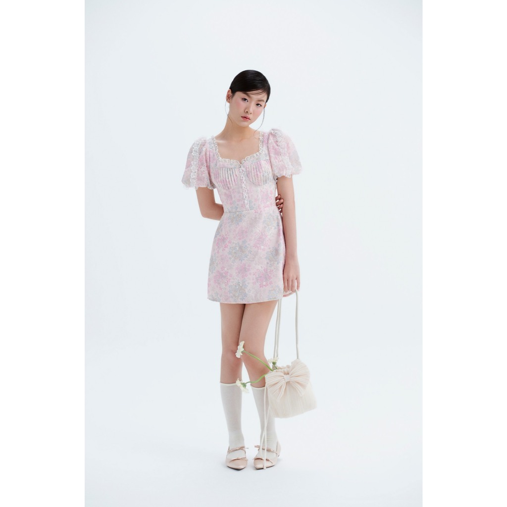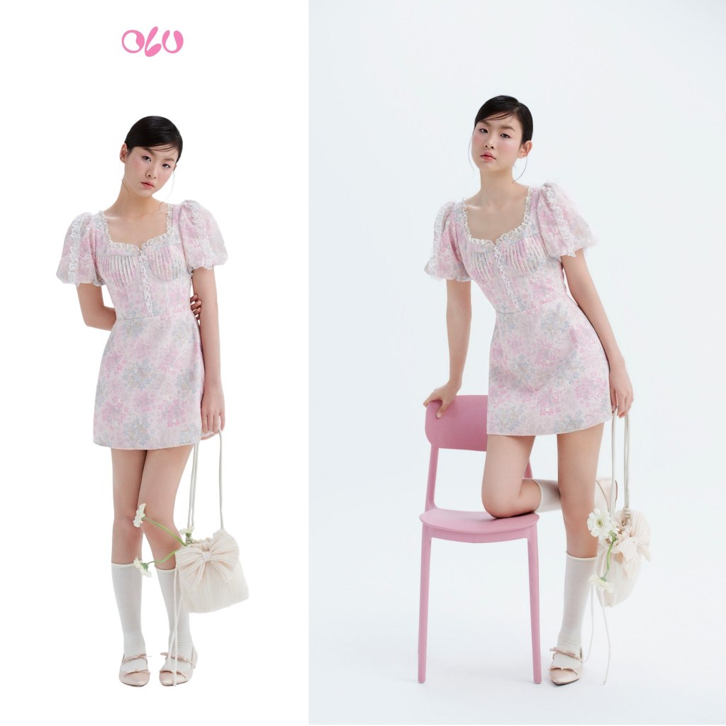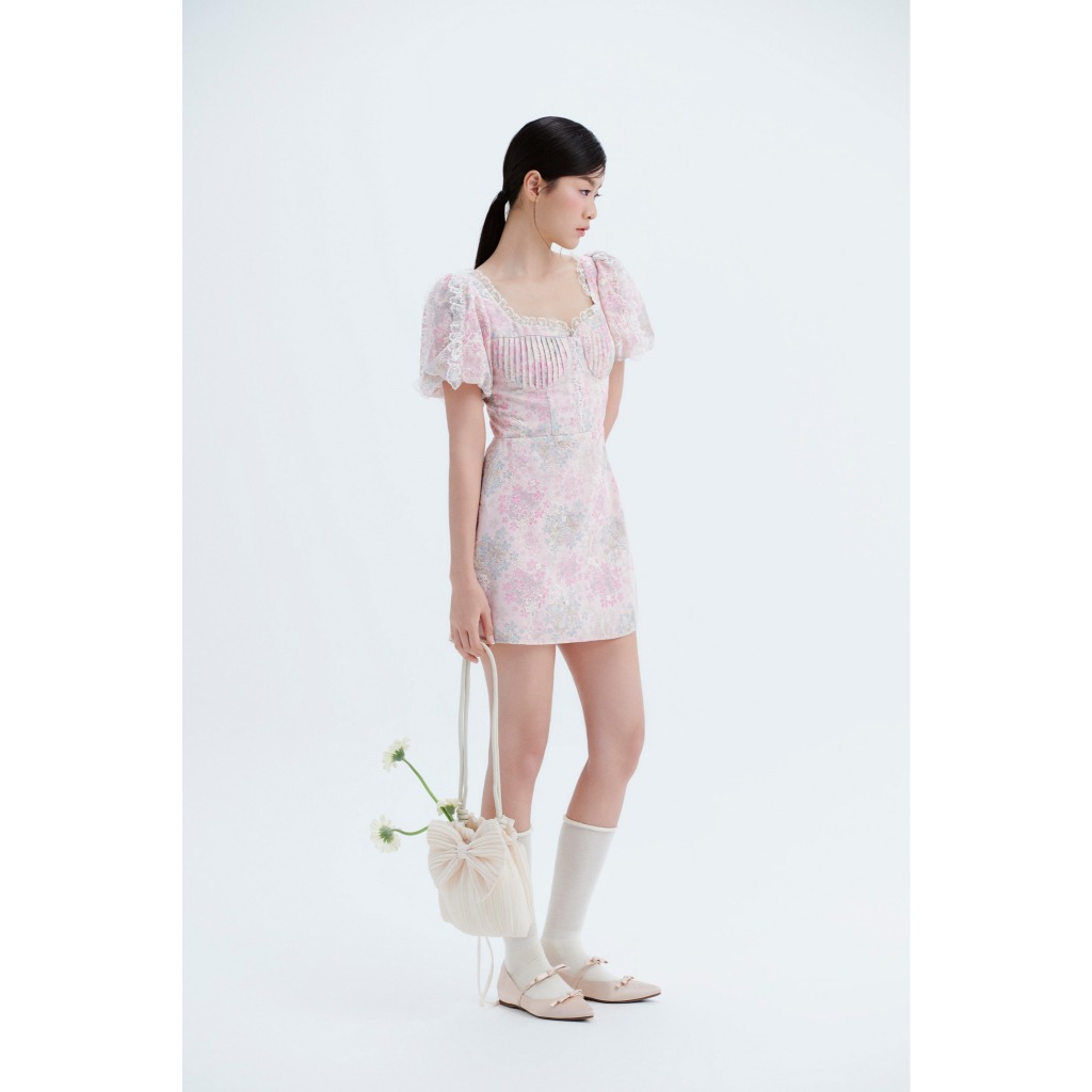 Đầm hoa tay bồng tiểu thư phối ren Novelette phù hợp đi làm đi chơi OLV
