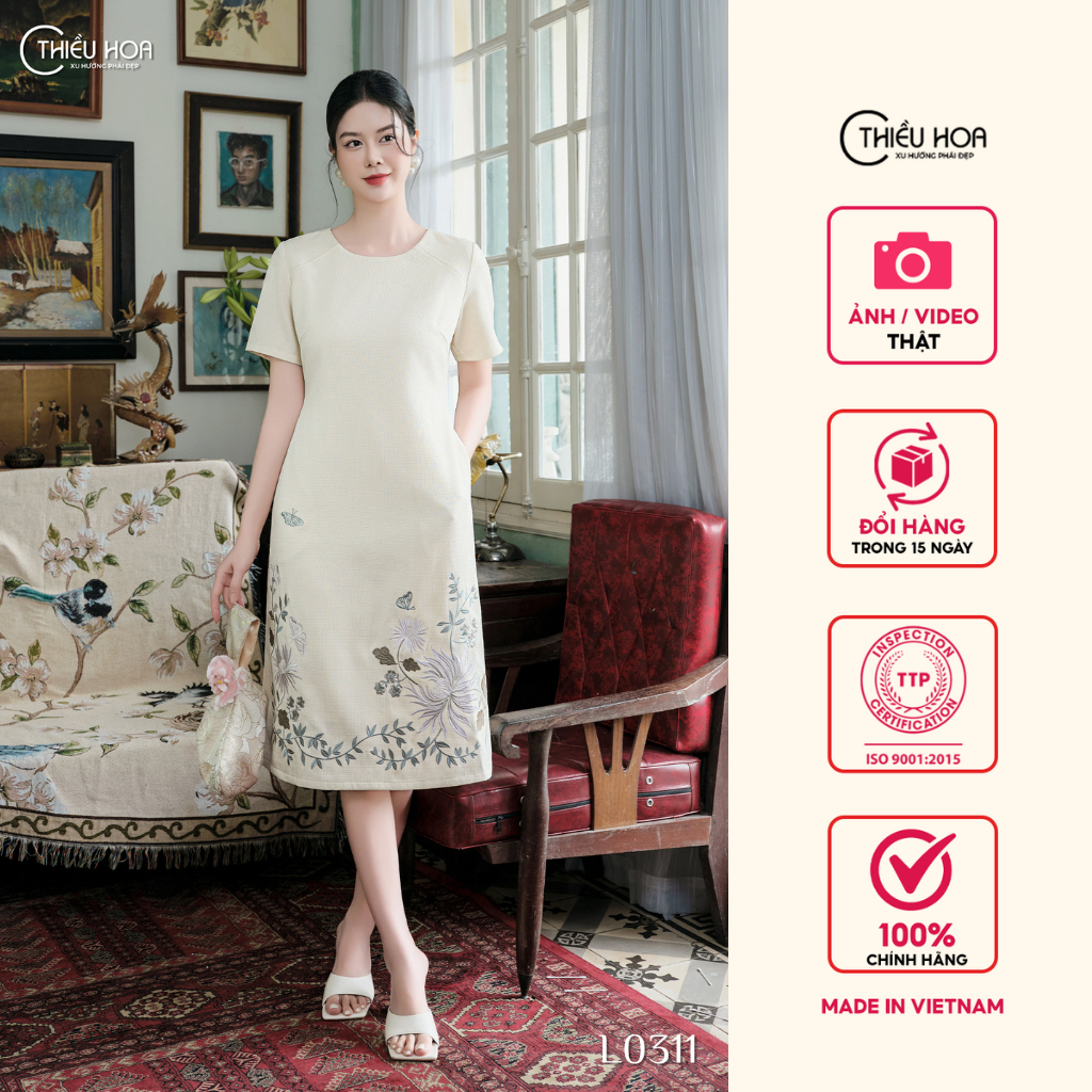 Đầm trung niên thiết kế sang trọng chất liệu Vải Dệt dày dặn mềm mại, thương hiệu Thiều Hoa DD4L0311