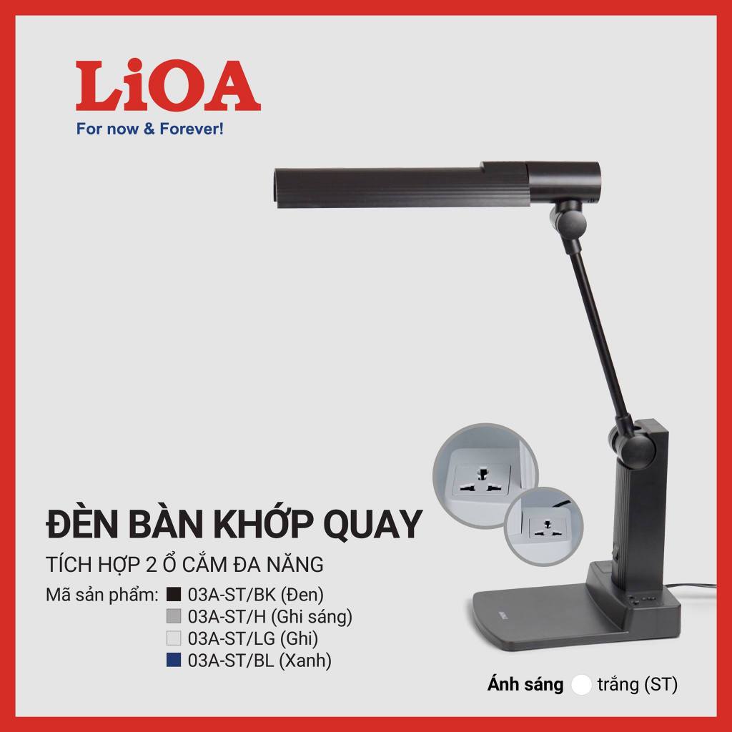 Đèn Bàn Học LED Khớp Quay LiOA - Chống Cận - Có Hộp Để Bút Và Ghim/Ổ Cắm Đa Năng/Sạc USB - Bảo Hành 2 Năm - Mã 03