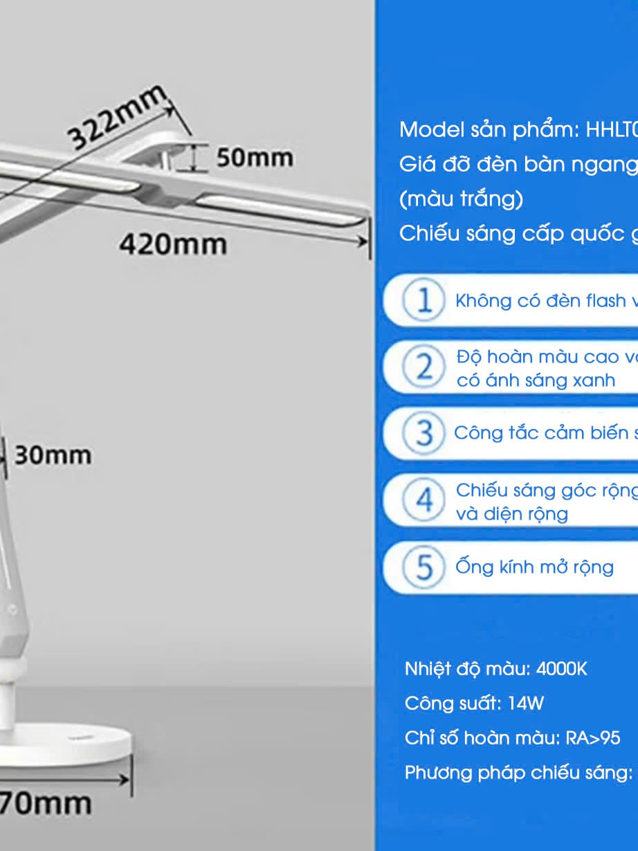 Đèn Bàn LED cao cấp PANASONIC HHGLT0633 20W, Không ánh sáng xanh Chip Led RG0 Chống cận, HHLT0655 CRI>98.8
